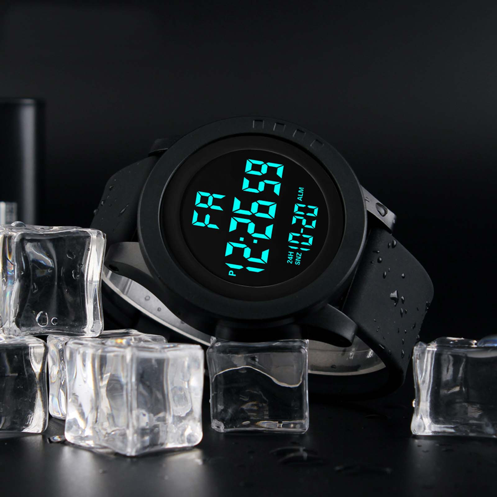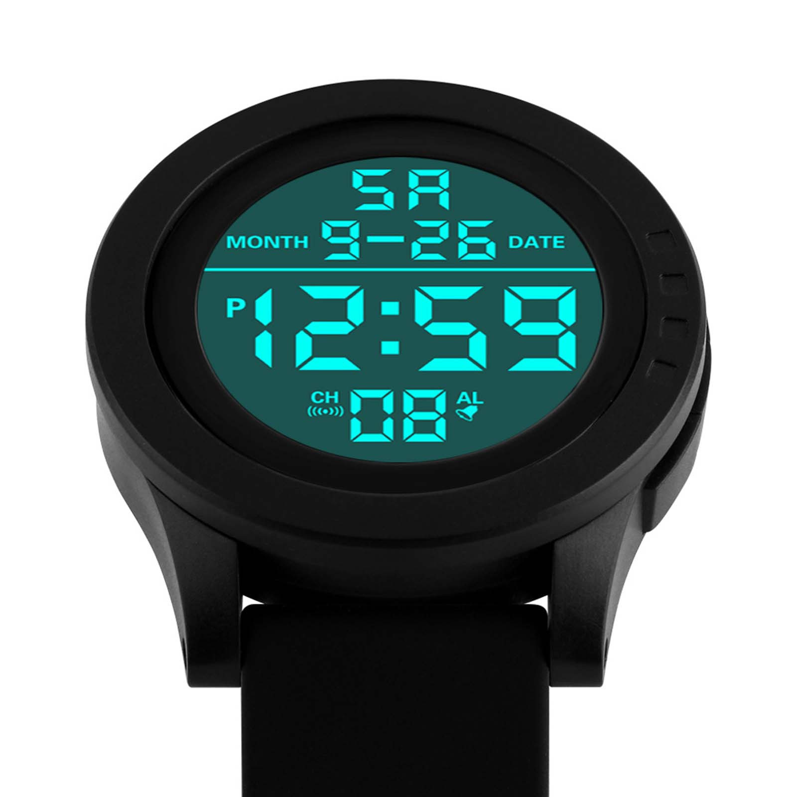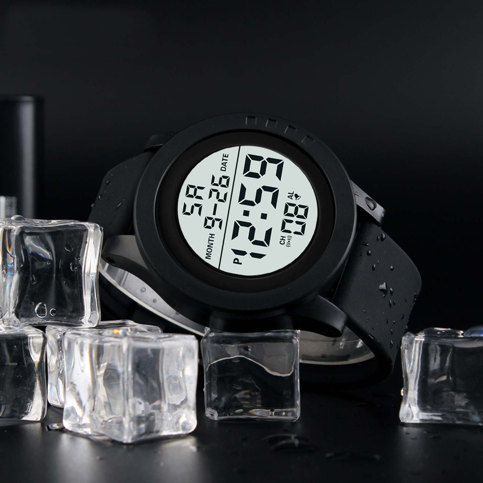 Цифровые часы: Модный спортивный дизайн циферблата. Большой циферблат и цифры с светильник, показывают время в темноте. Легко видеть время четко в светильник, легко читать.