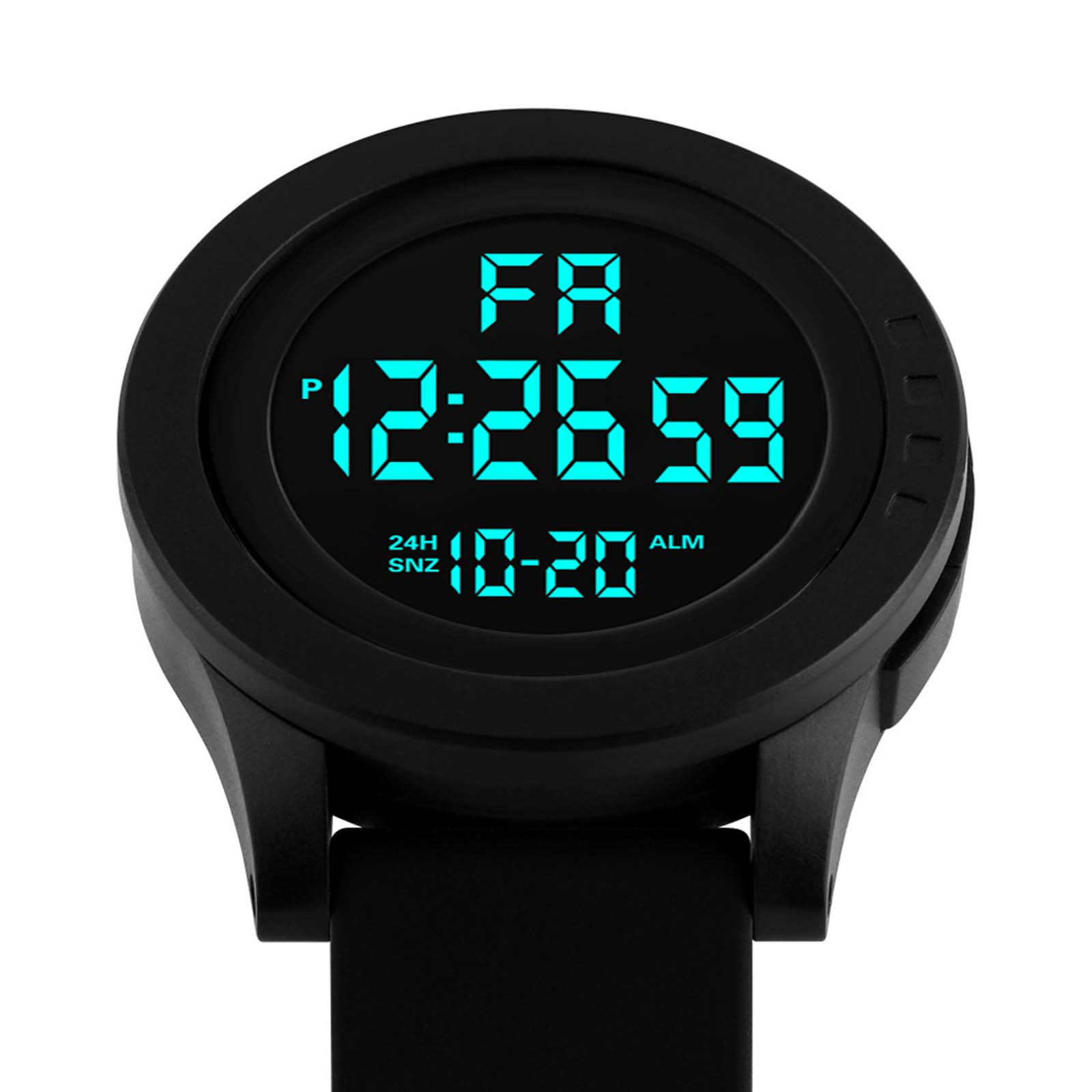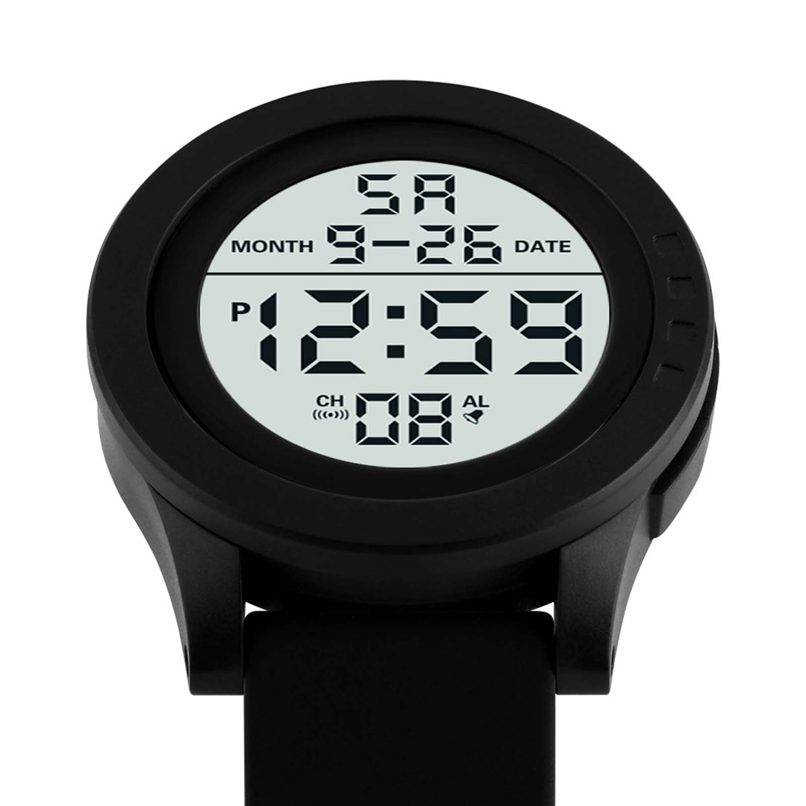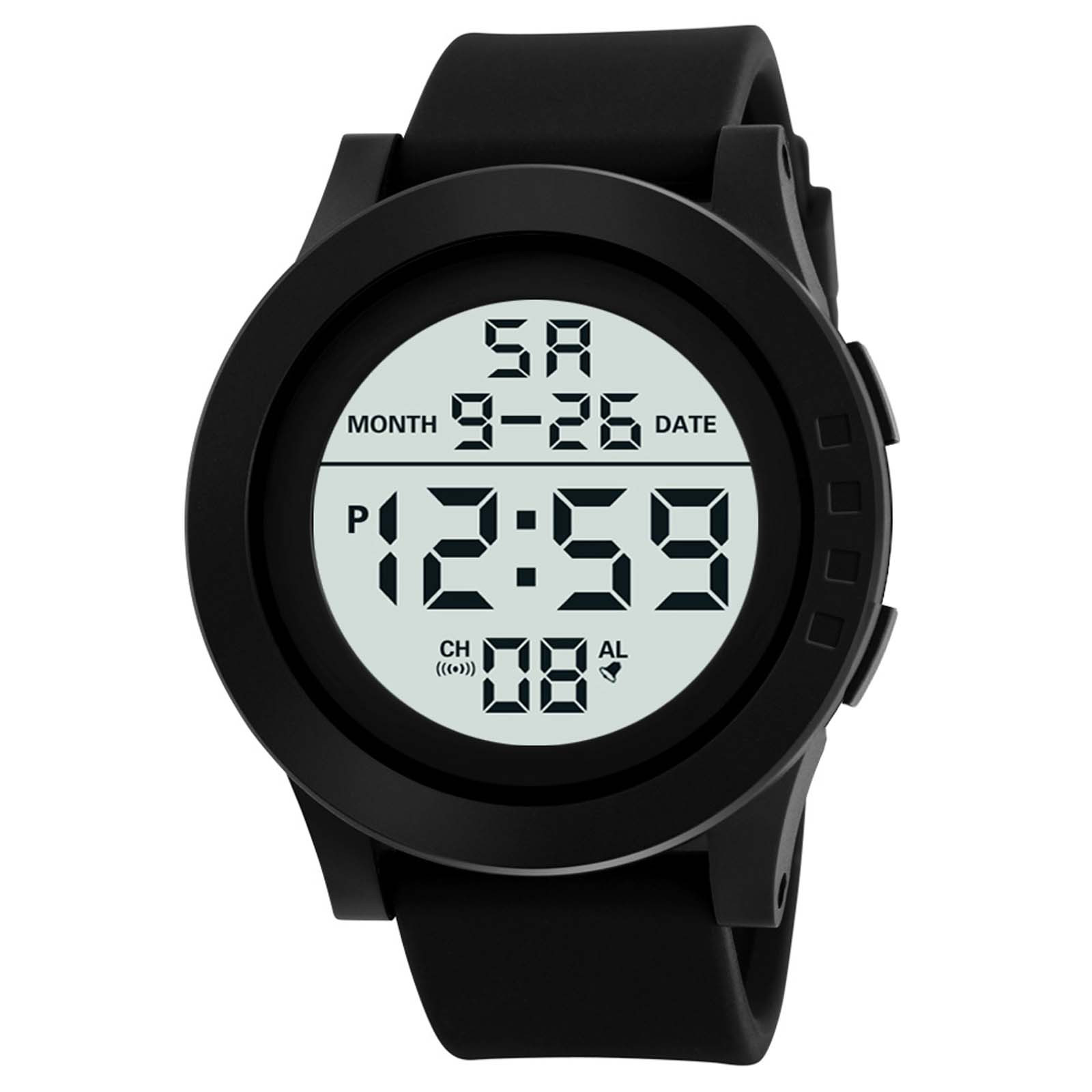 Цифровые часы: Модный спортивный дизайн циферблата. Большой циферблат и цифры с светильник, показывают время в темноте. Легко видеть время четко в светильник, легко читать.