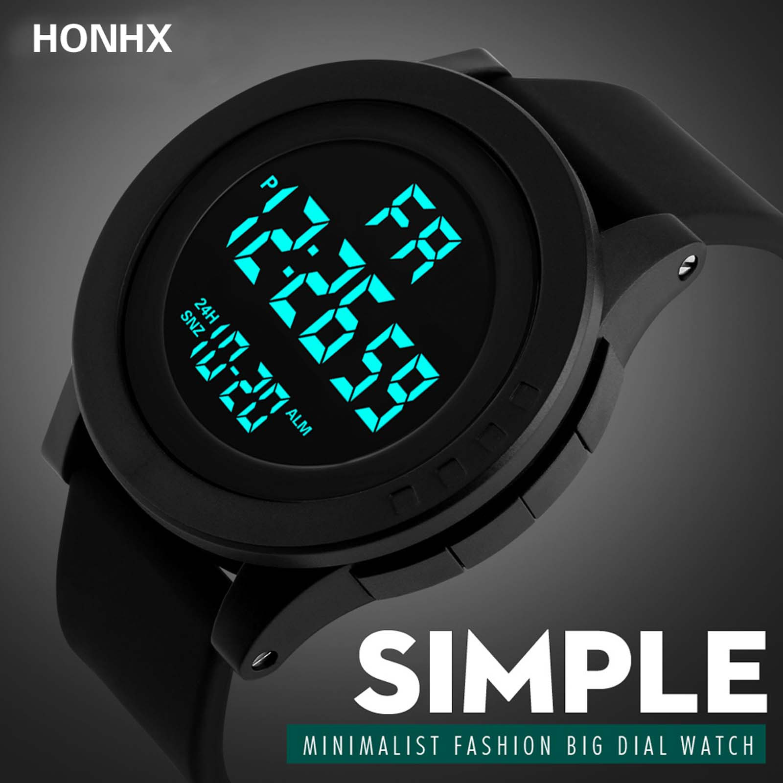 HONHX Mens светодиодный цифровой дисплей часы Дата Спорт Женские уличные электронные часы