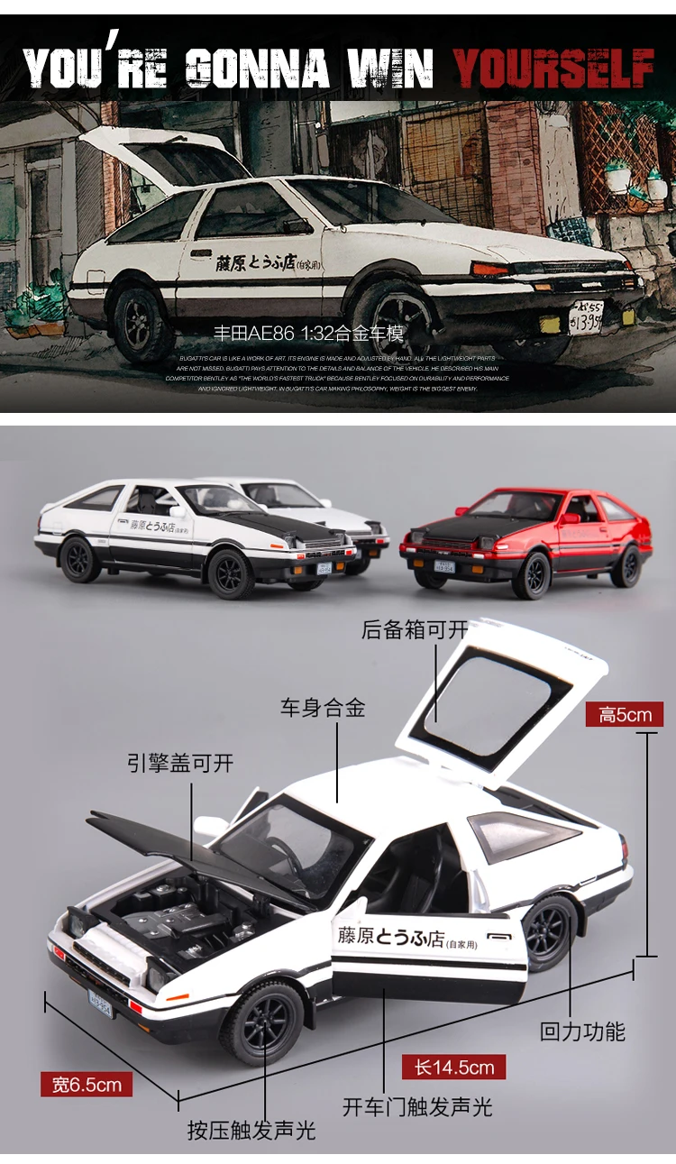 1:32, тойота AE86, сплав, Спортивная модель автомобиля, литая под давлением игрушка, четыре двери, открывающийся звуковой светильник, супер гоночная коллекция игрушек