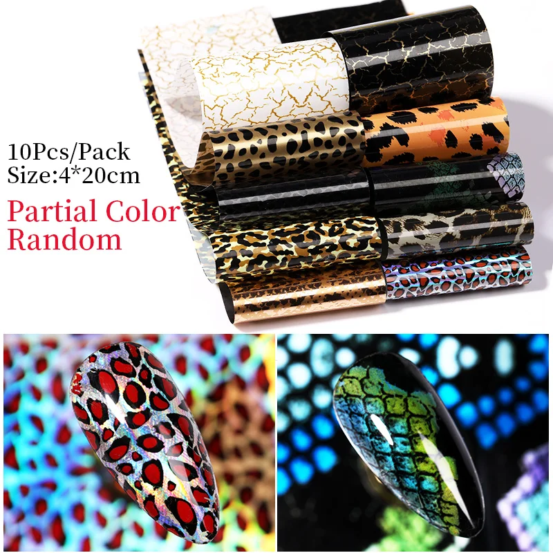 4. Нанесите клей для фольги, нарежьте кусок фольги (достаточно большой для ногтей), нажмите на ногти. Различные цвета фольги можно смешивать на ногтях.