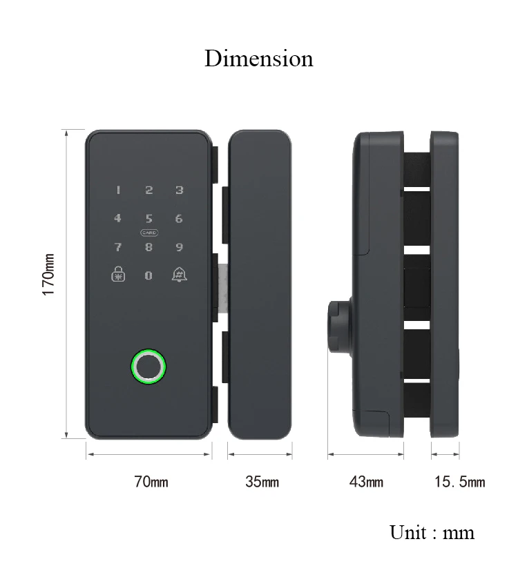 Режим разблокировки: отпечаток пальца, пароль, карта, пульт дистанционного управления (Опционально), Tuya APP (Опционально)
