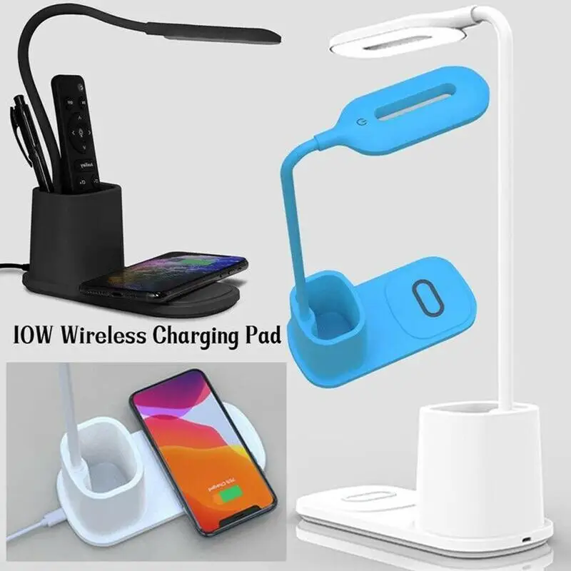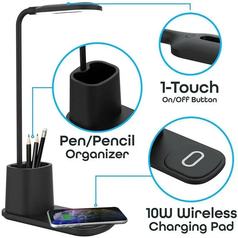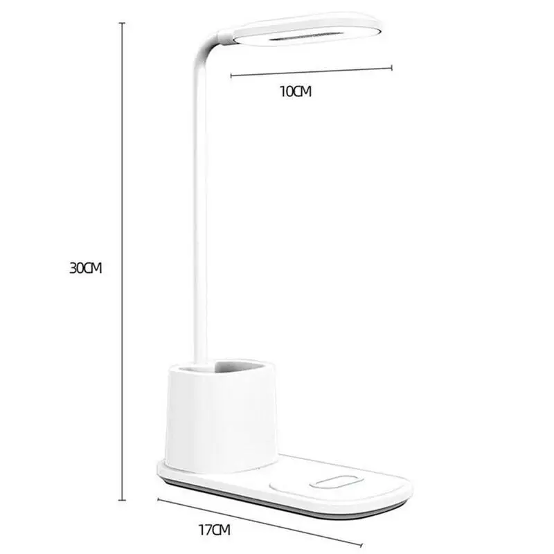 4. U-образная настольная лампа имеет гибкую гусиную шею, вы можете направлять ее туда, где вам это нужно. Удобные инструменты для организации делают ваши ручки, карандаши и другие офисные аксессуары удобными. Сенсорная Беспроводная зарядка, настольная лампа с защитой глаз 10 Вт и регулируемые варианты освещения