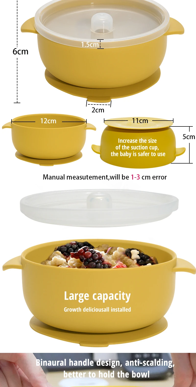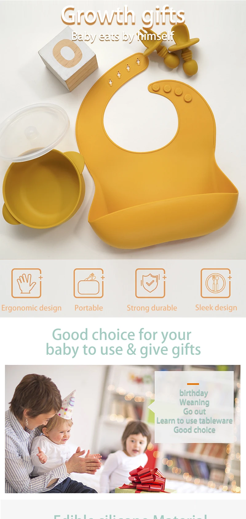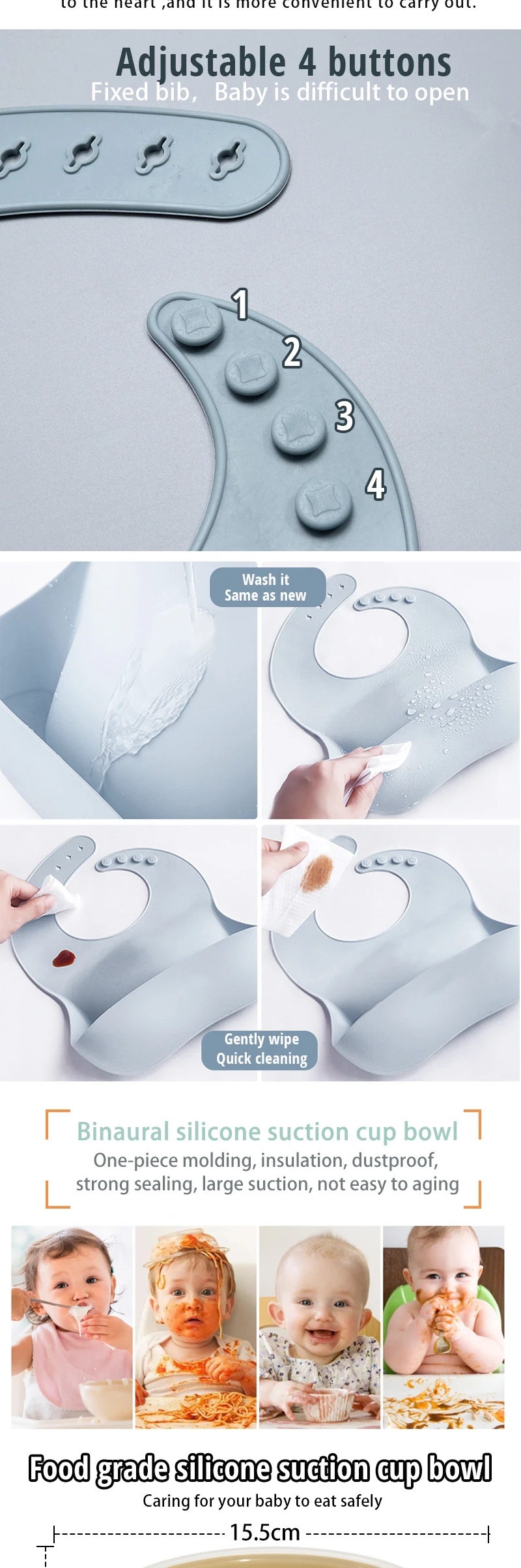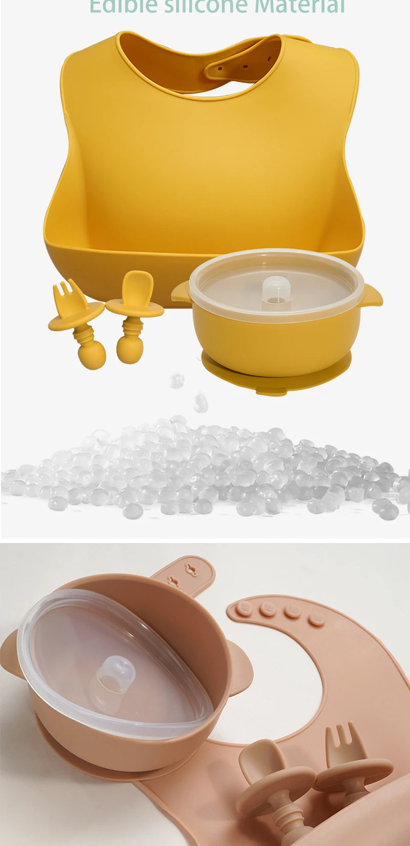 Детский силиконовый набор столовых приборов, однотонный водонепроницаемый детский нагрудник, чаша на присоске с крышкой, мягкая мини-ложка с вилкой из силикагеля