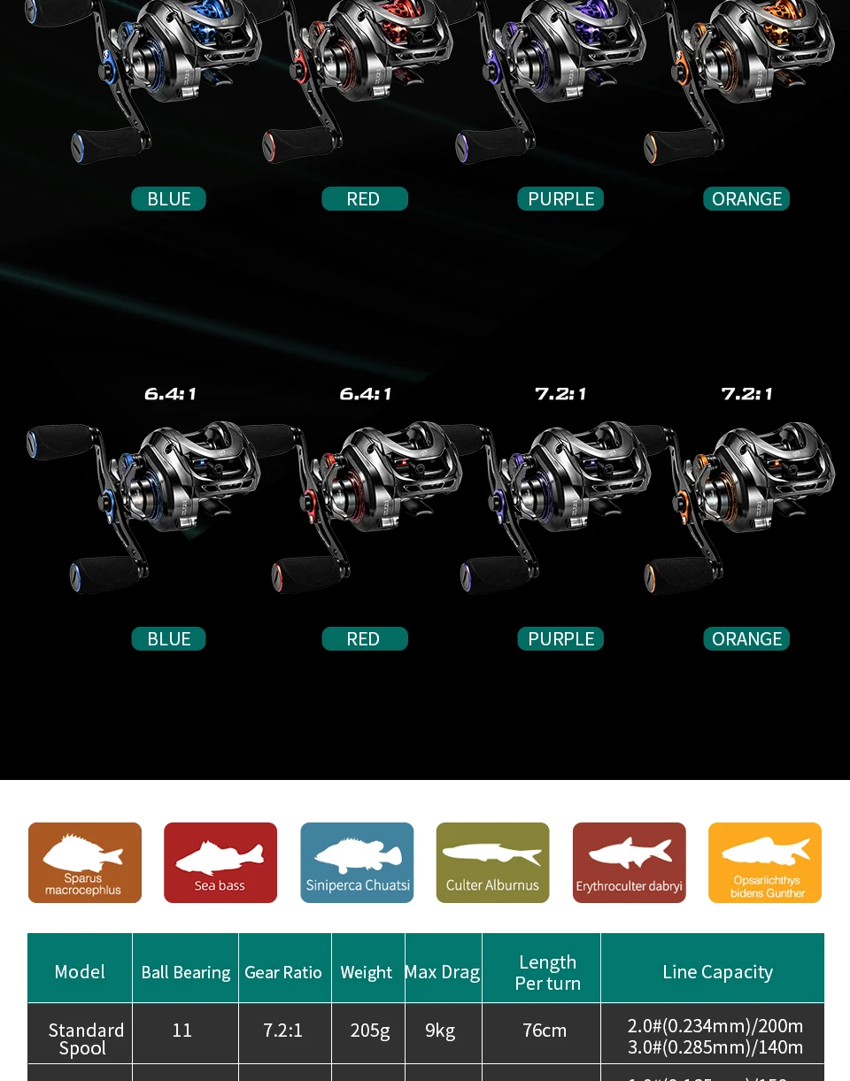 BFS мелководье катушка подходит для мелких рыб, он обычно используется Тонкая леска меньше, чем 1,5 # Диаметр 0,235 мм, потому что это Емкость шпули может не быть в преимущество мелководье катушка легче, и она требует меньше силы, чтобы бросить рыболовную катушку, и леска отлита дольше, потому что леска направляющая параллельна мелководье катушка