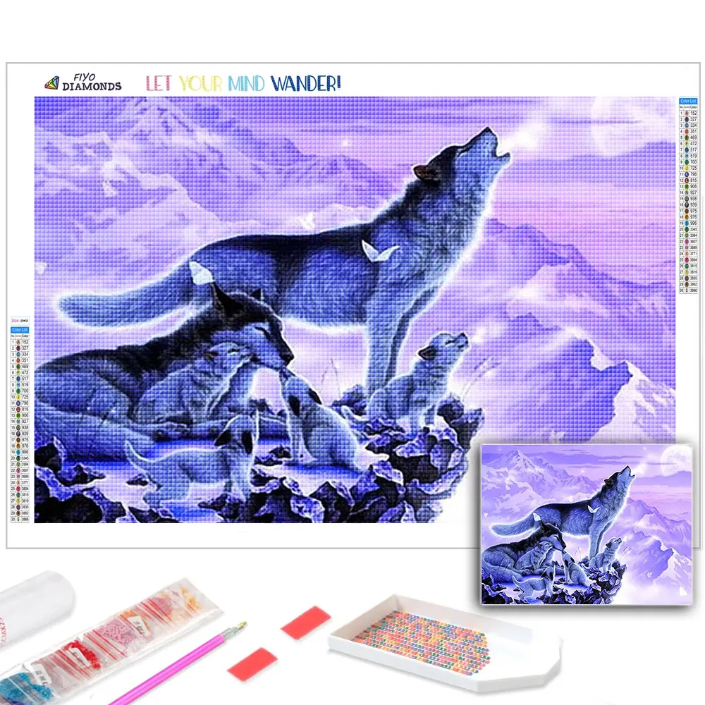 【Площадь сверла】:Полностью квадратная/круглая бриллиантовая мозаичная фигурка животного волка