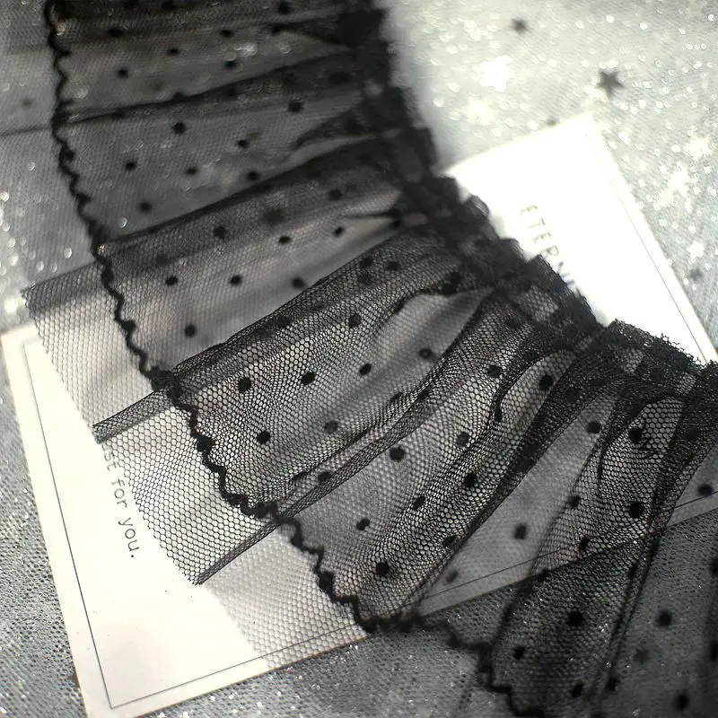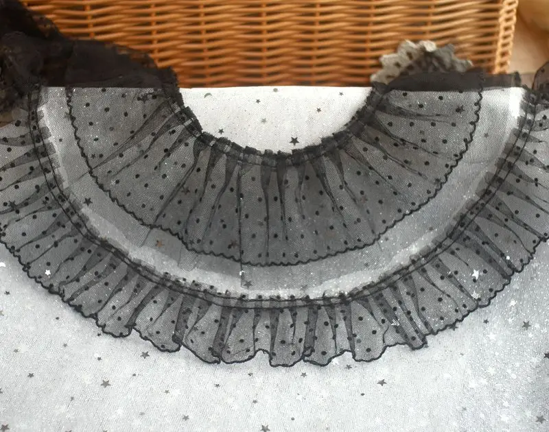 10 см Широкий Тюль Белый Черный двухслойная сетка 3D плиссированная вышивка в горошек кружевной воротник отделка рюшами свадебное платье декор для шитья «сделай сам»