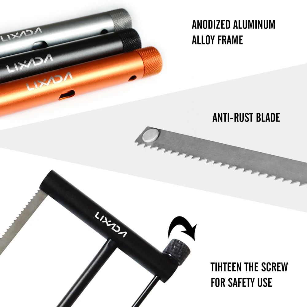 Рама из алюминиевого сплава и лезвие из нержавеющей стали, высокая прочность и прочность. Тонкий размер после складывания позволяет удобно брать с собой. Отличный инструмент для активного отдыха.