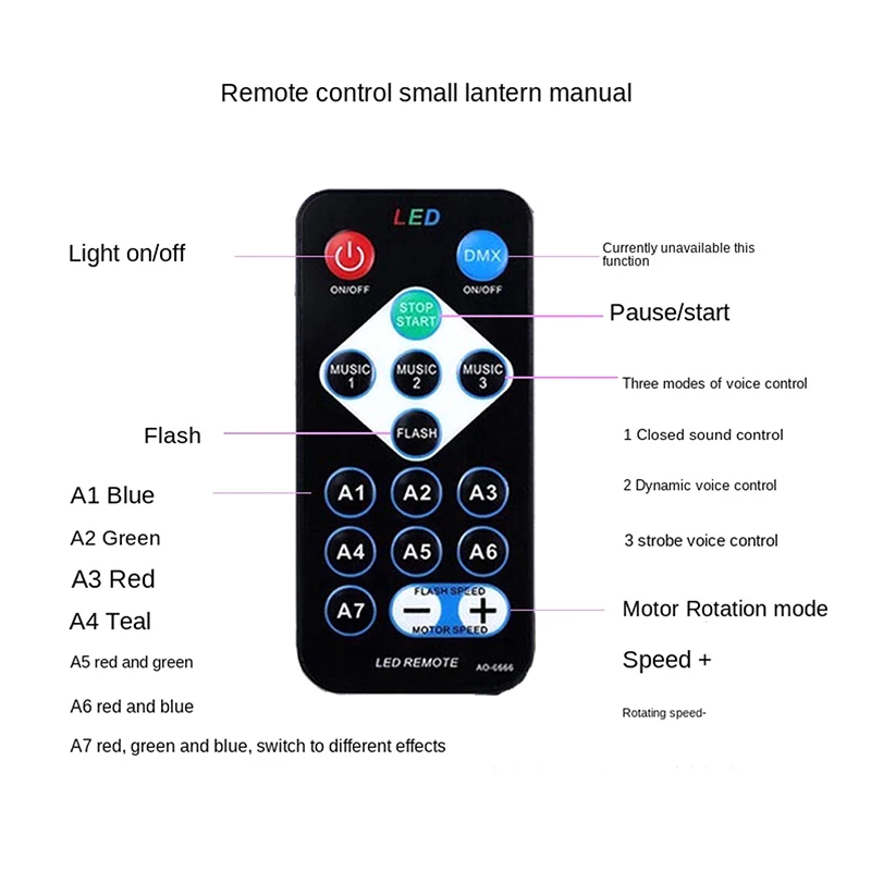 Режим работы: самоходный режим, активированный голосом (световые эффекты могут быть изменены автоматически или изменены с ритмом музыки)