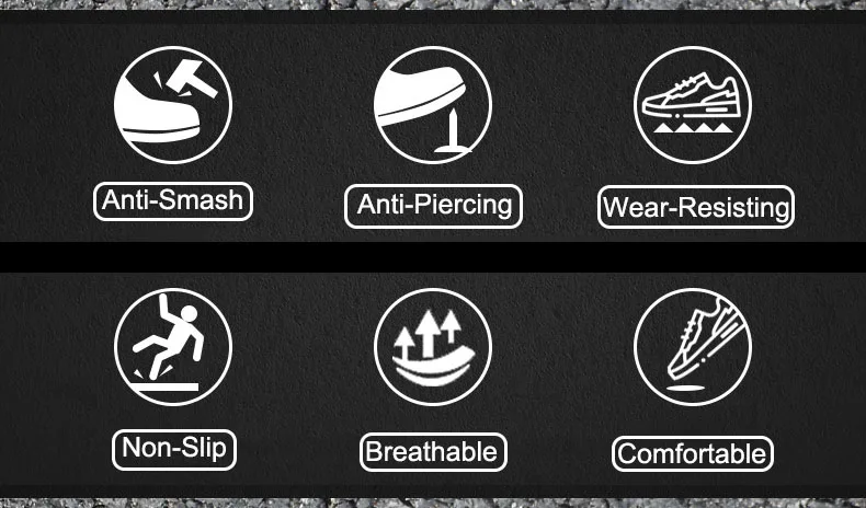 Абсолютно новый и качественныйПоверхность изготовлена из искусственной кожи, носок изготовлен из стали, подошва из полиэстераПрочный стальной носок и стальная промежуточная подошва обеспечивают полную защиту ваших ногОсобая противоскользящая подошваПротивоскользящий, ударопрочный, противоискрящийсяИдеально подходит для фабрики, строительства и других мест, чтобы не повредить ногуВам нужен такой, чтобы защитить ногу во время работы