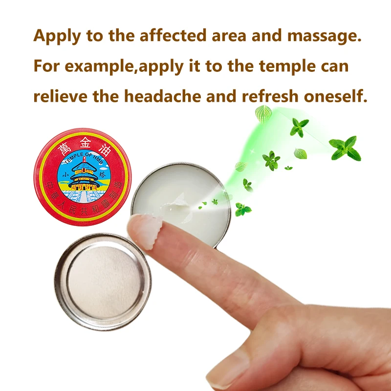 Быстрое и эффективное облегчение головных болей, заломов носа, укусов насекомых, зуда, Мышечных болей и боли, растяжений и метеоризма. Аккуратно нанесите бальзам тигра на пораженный участок.