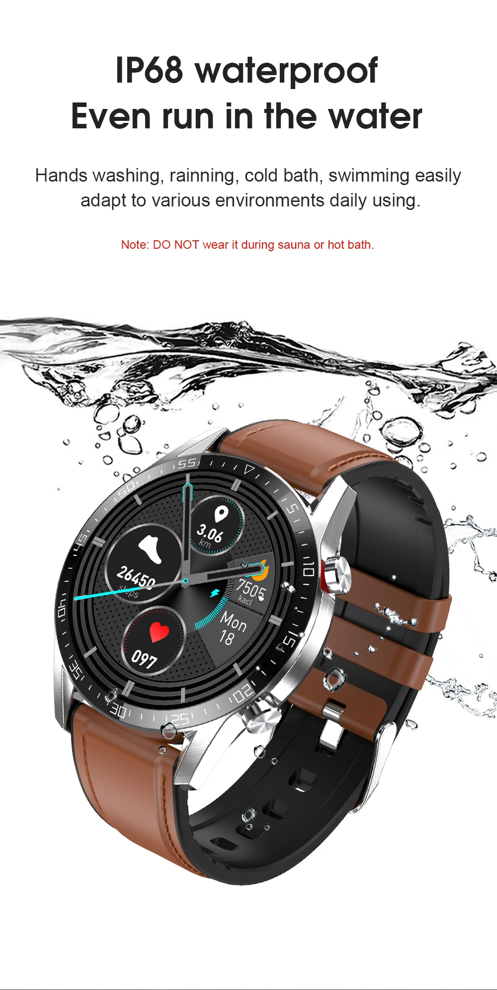 1. Распознавание датчика чипа относится к оптическому датчику. Когда лампа обнаружения часов включена и получает светильник, отраженный на объекте, она будет генерировать данные, пока часы получат отраженсветильник, он будет генерировать значение. Только данные, отображаемые на коже, будут реальными. 2. Данные, собранные этим устройством, предназначены только для справки, а не для медицинских целей. 3 .. Это электронный продукт. Не принимайте ванну с этим продуктом. Не подвергайте воздействию тепла при высоких температурах. Не замачивайте в воде.