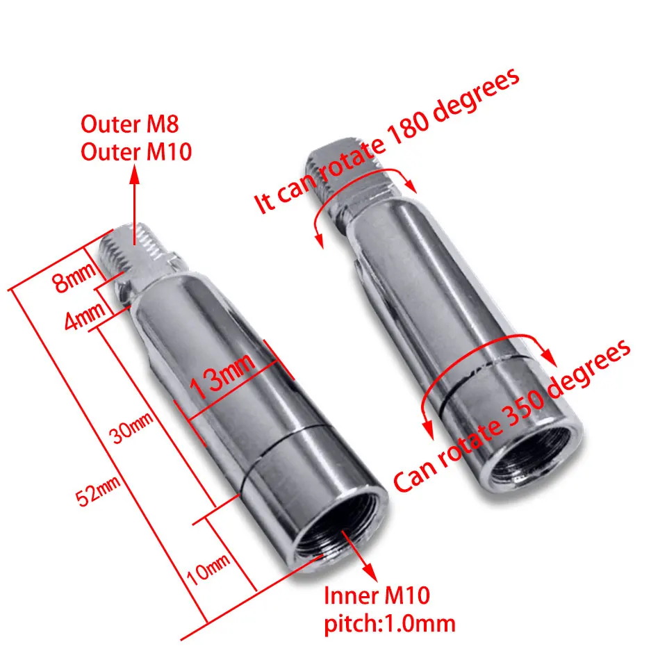 2 шт. настольная лампа Универсальная головка 13x52 мм Механическое рулевое соединение Внутренний Зуб M10 внешний зуб M8/M10 кронштейн рулевой трубы