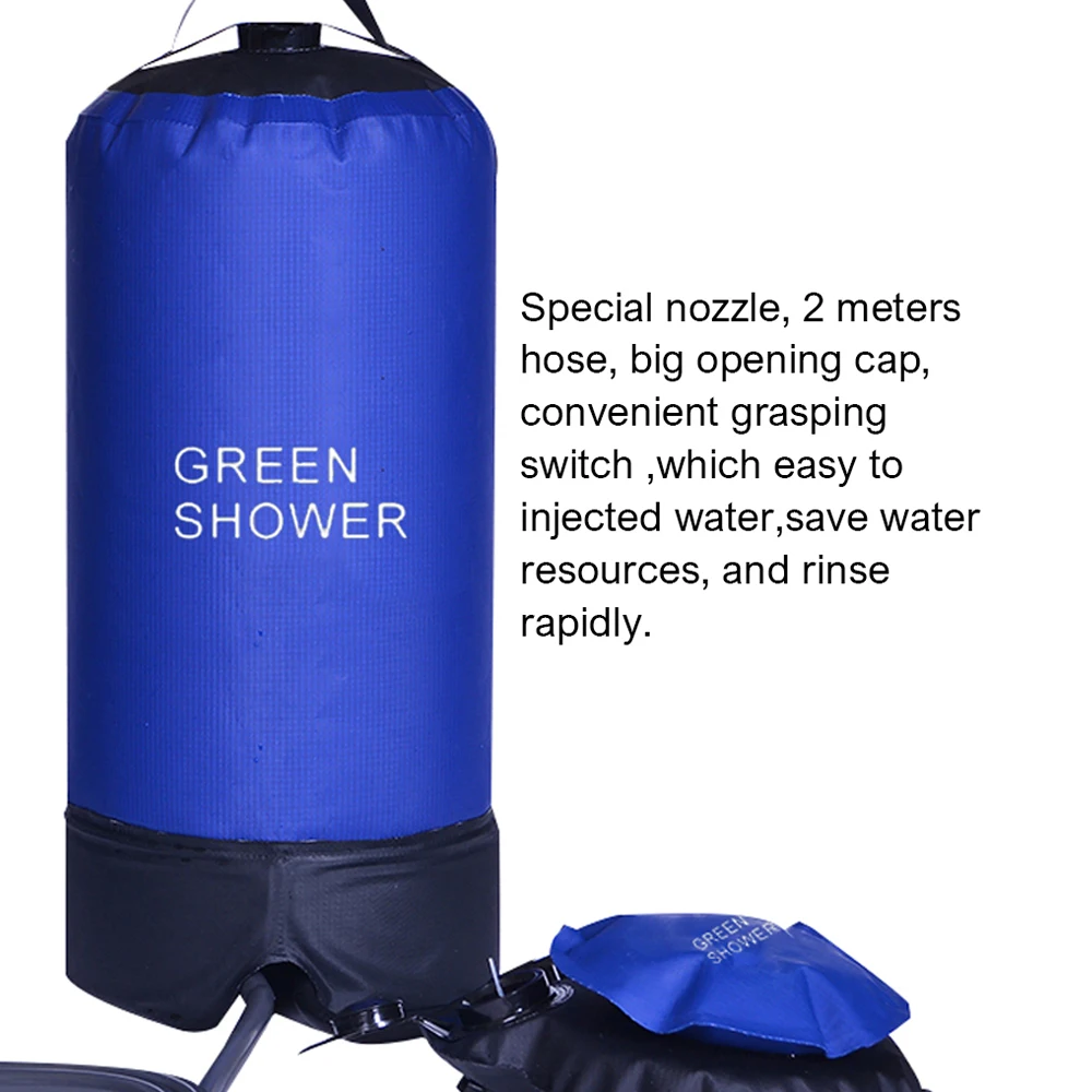 Сумка для душа на солнечной батарее изготовлена из качественного материала, она надежно удерживает воду. Достаточно хорошо, что вы можете повесить его на деревья или палатку для душа, когда вы наслаждаетесь вашим душем.