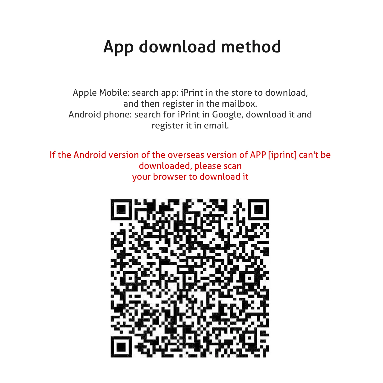 1. Загрузите приложение «iprint» для телефонов iOS; Пользователи Andriod могут выполнить поиск «iprint» и загрузить его в google store.