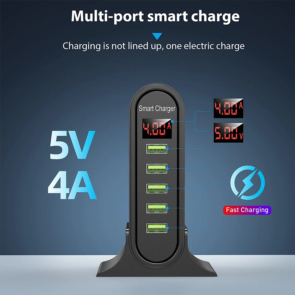 Эта зарядная станция USB может заряжать 5 устройств одновременно, экономя время для вас, вы можете заказать в соответствии с вашими потребностями.