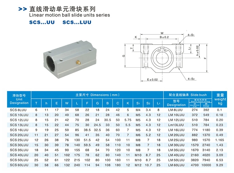Model: SCS8LUU / SCS10LUU / SCS12LUU / SCS13LUU / SCS16LUU / SCS20LUU / SCS25LUU / SCS30LUU / SCS35LUU / SCS40LUU / SCS50LUU / SCS60LUU