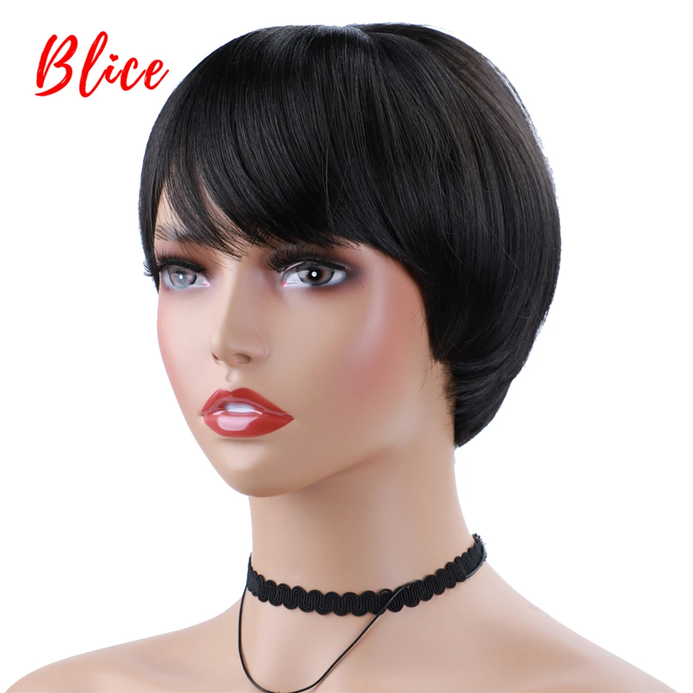Женский короткий парик Blice, парик из синтетического материала, натуральный черный, термостойкий, высокая температура, на каждый день и Хэллоуин, вечерние парики, американский афроамериканец