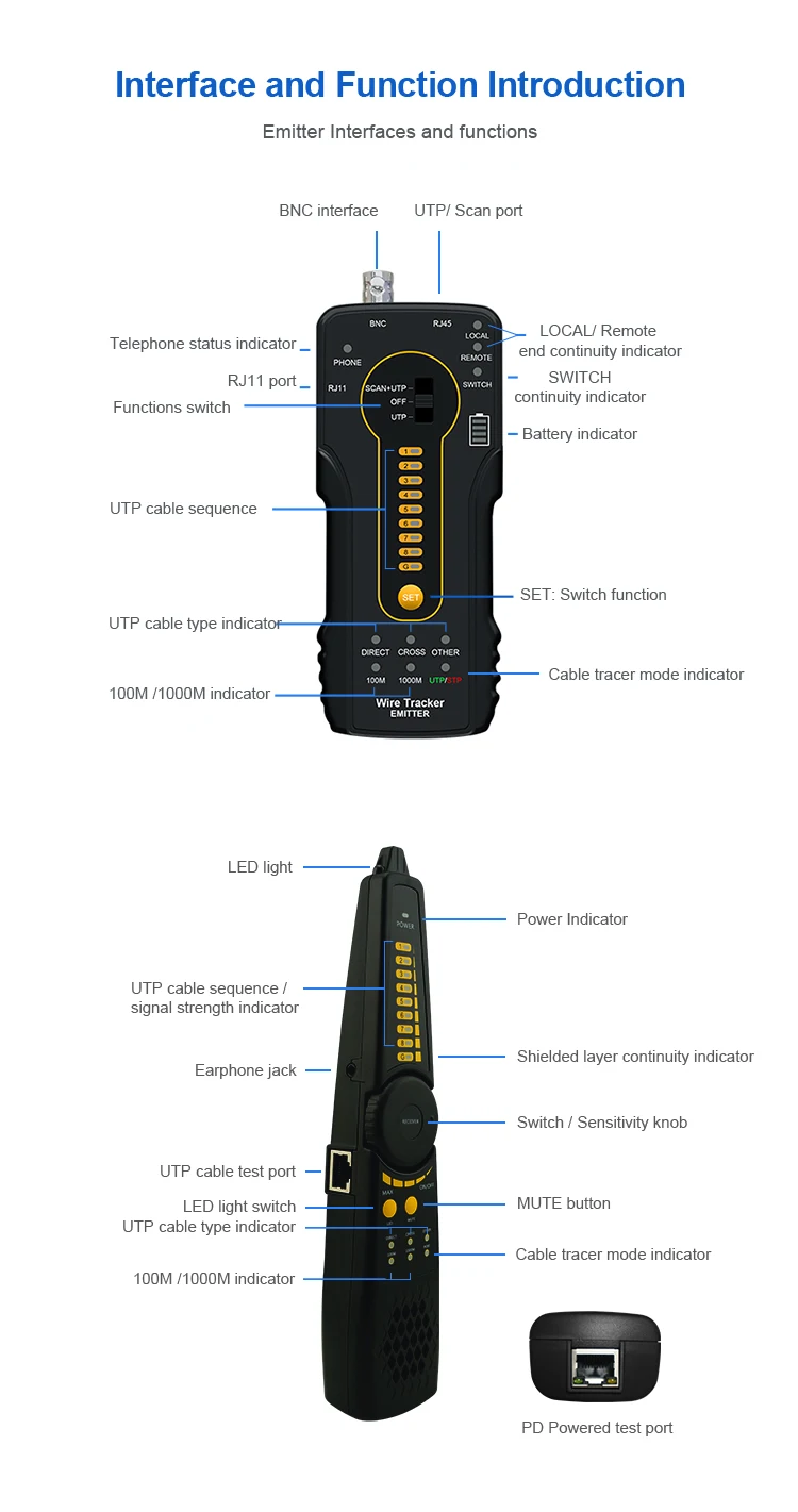 ● Кабель tracer, может искать кабель UTP, Кабель BNC от беспорядочного кабеля