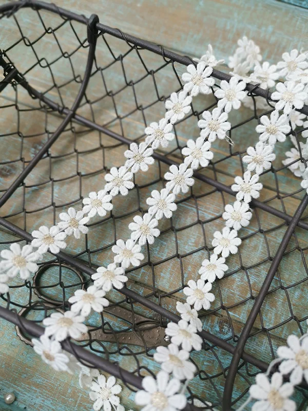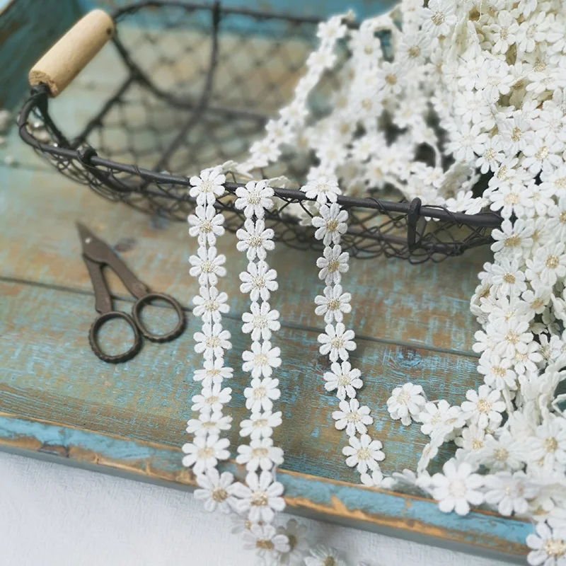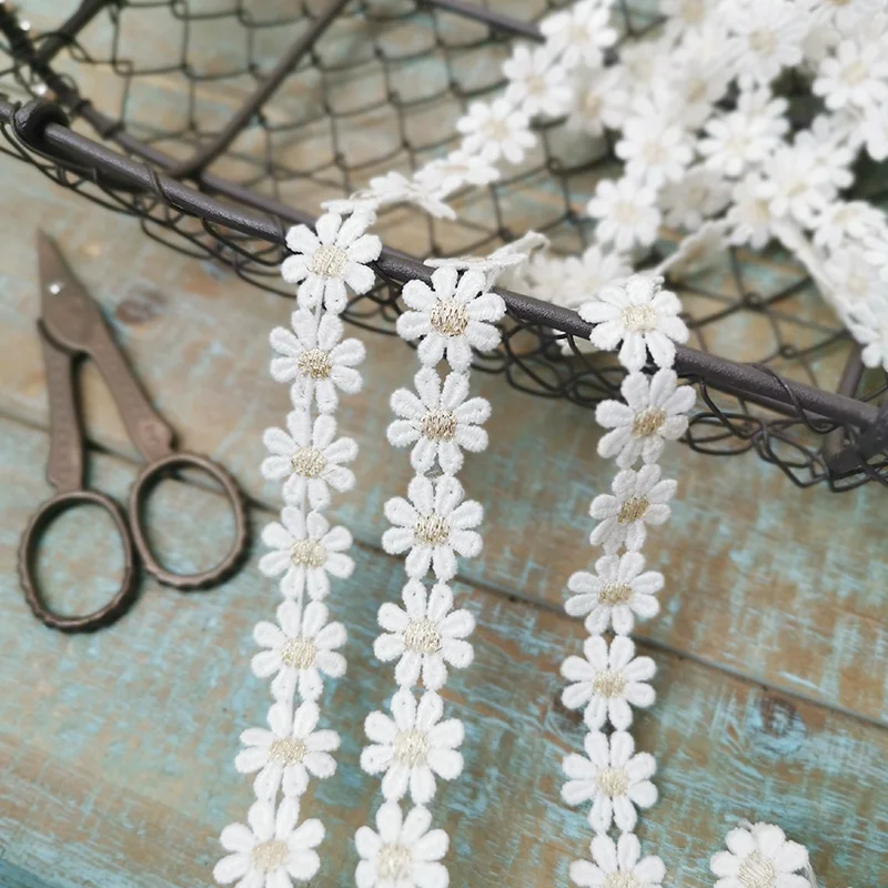 1,5 см в ширину пасторальная хлопковая белого и золотистого цветов, с вышивкой «маленькая Маргаритка», с кружевными аппликациями, лента Головные уборы повязка на голову швейная отделка домашний декор