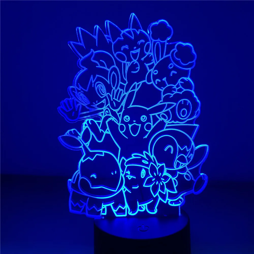 3D лампа Pokemon Pikachu СВЕТОДИОДНЫЙ Ночник светильник Shaymin Chimchar Turtwig Piplup Pocket Monster Lampara Kawaii милый светильник s Декор Светильник ing yh