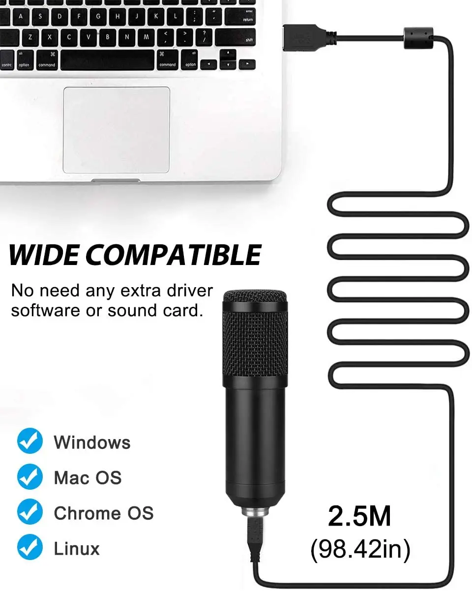 16 mm Diaphragm Condenser USB Microphone Delivering a slightly fuller, round and potentially warmer sound.