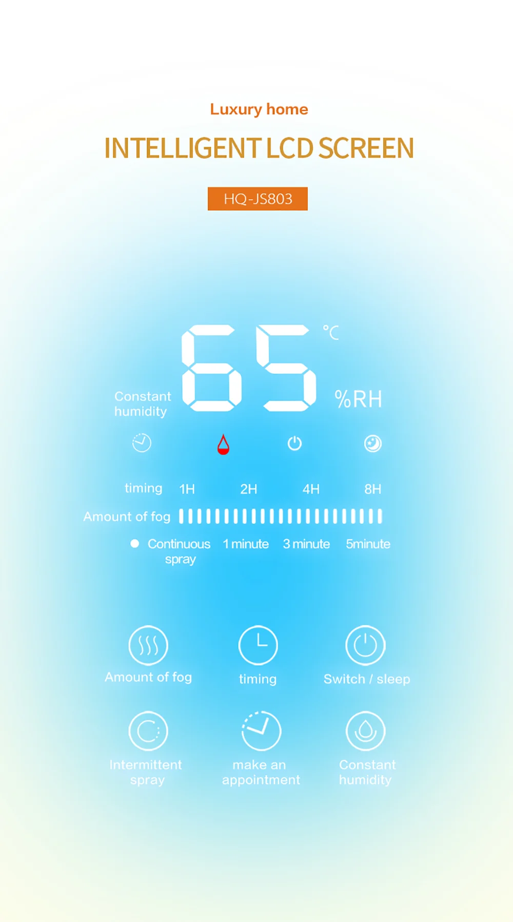 2. Уровень выхода тумана автоматически отображает 3. Влажность постоянного 95% относительной влажности