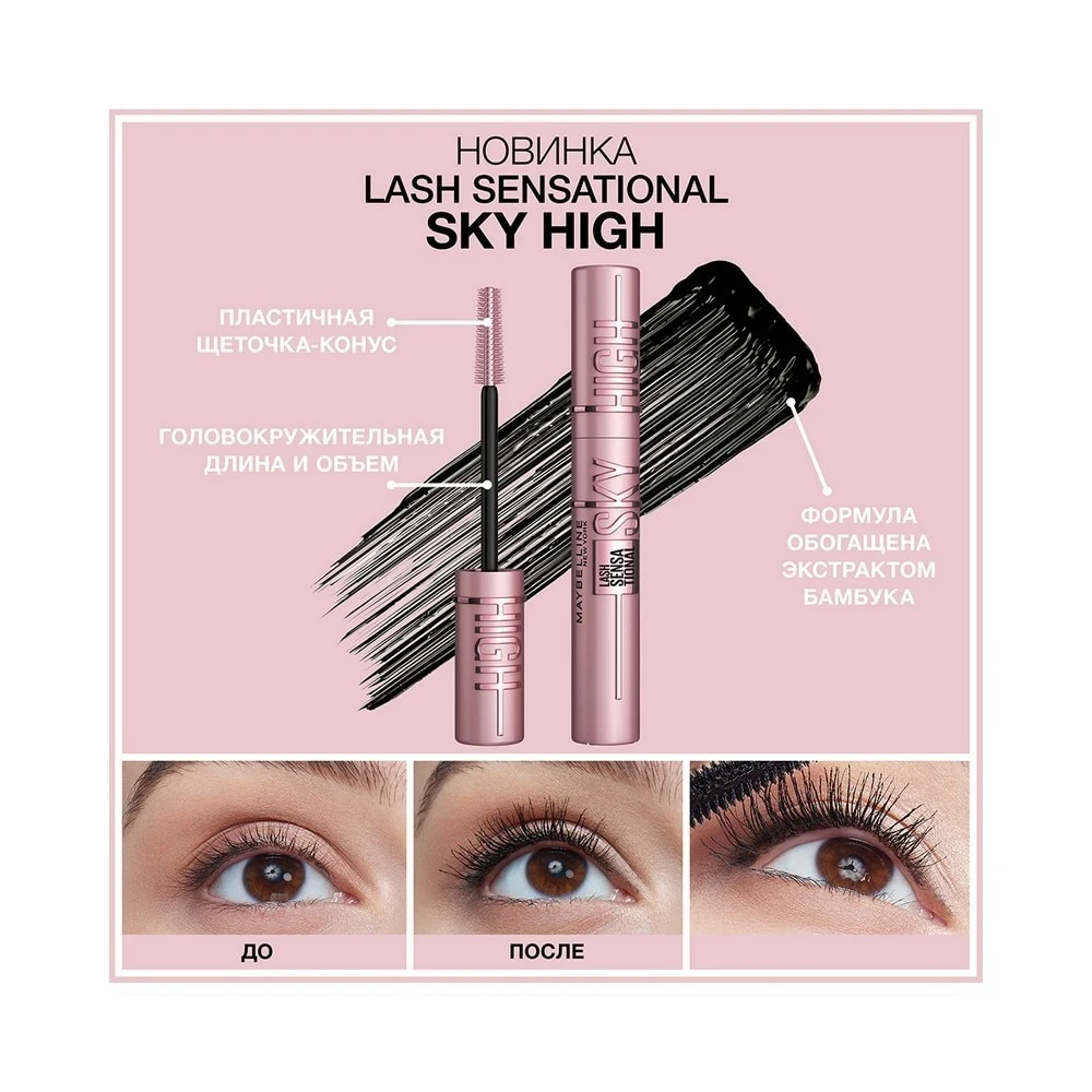 Mascara Lash Sensational Sky High is a dizzying length and expressive volume for the whole day! A unique formula of mascara with bamboo extract and fiber fibers strengthens and lengthens the cilia, creating an amazing effect of open sight. Silicone plastic brush-cone colors each eyelash from the roots to the tips and guarantees a perfect separation. Mascara is tested by ophthalmologists. Suitable for sensitive eyes and use with contact lenses. Easy to wash off. Application: to achieve the maximum effect, paint the eyelashes along the entire length in several layers. To make the look more open, apply mascara first to the lower eyelashes, and then to the upper eyelashes. Composition: Aqua/water, propyene glycol, styrene/Acrylates/ammonium methacrylate copolymer, polyurethane-35, Cera Alba/beeswax, synthematic orphlogopite, Glyceryl stearate, cetyalcopol, PEG-200 Glyceryl stearate, ethylenediamine/stearyl dimer, Copernicia cerifera/carnauba wax, stearic acid, palmitic acid, palmitic acid, ethylene/VA copolymer, alcohol Denat. Paraffin, aminomethyl propanediol, phenoxyethanol, capryl glycol, pentaerythrityl tetra-di-t-butyl hydroxyhydrocinnamate, poassium sorbate, silica, soluble collagen, bambusta, trisodium EDTA, [+/- May contain CI 77491, CI 77492, CI 77499/iron oxides, CI 77007/Ultramarines, mica, CI 77891/75470 CI 77288/chromium oxide greens, CI 77742/manganese violet, CI 77510/ferric ferrocyanide.