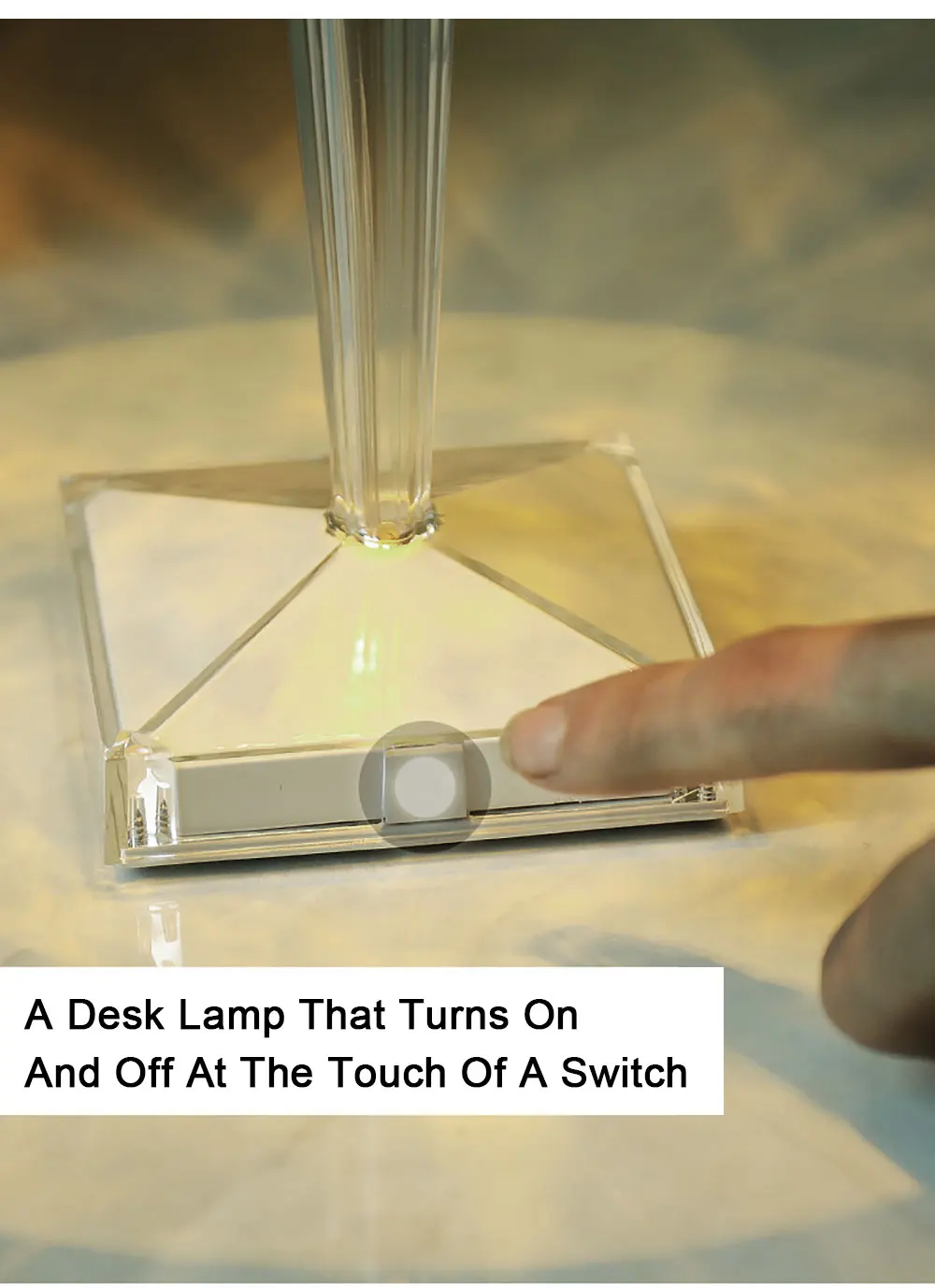 Настольная лампа, которая включается и выключается одним нажатием переключателя.