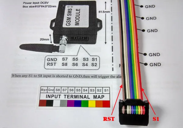 Вход сигнала тревоги должен быть входным типом переключателя. Когда вход от S1 до S8 коротко замыкается до GND, тогда срабатывает сигнал тревоги