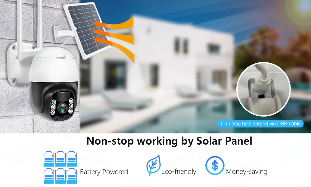 -Питание от солнечной панели, камера должна использовать 6 батарей 18650 для работы. Это может сэкономить много счетов за электричество.