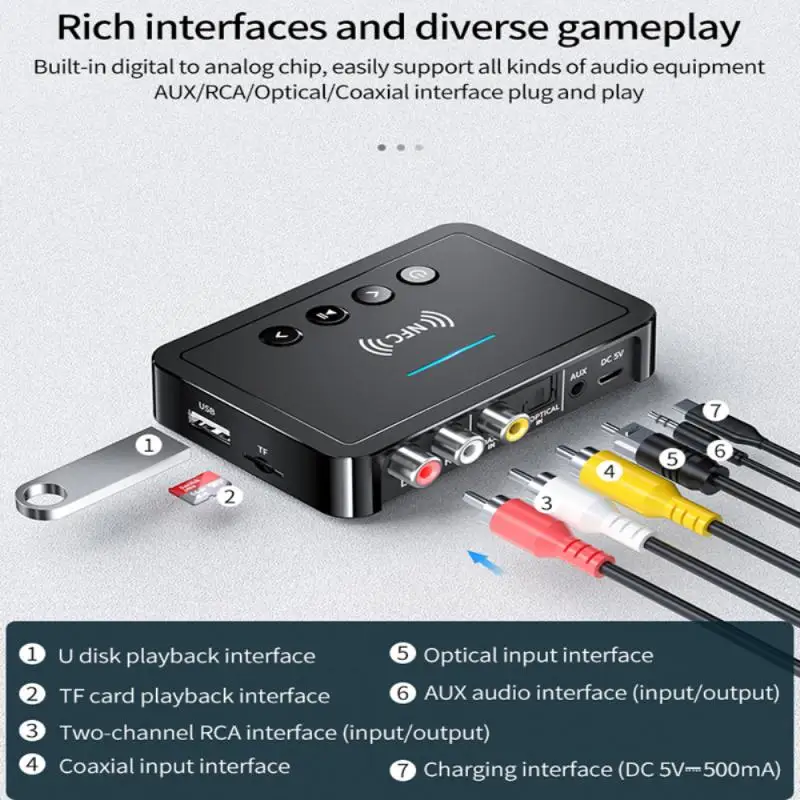 Совместимые устройства: мобильные телефоны и PAD с системой Android, IOS, проводные динамики, усилители мощности и bluetooth-динамики или наушники, поддерживающие A2DP/протокол, подключены для использования.