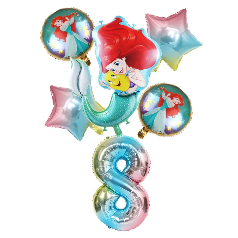 Вечерние принадлежности для маленькой русалки Ариэль Дисней, одноразовая посуда для дня рождения, скатерть, Подарочная сумка, украшение для торта