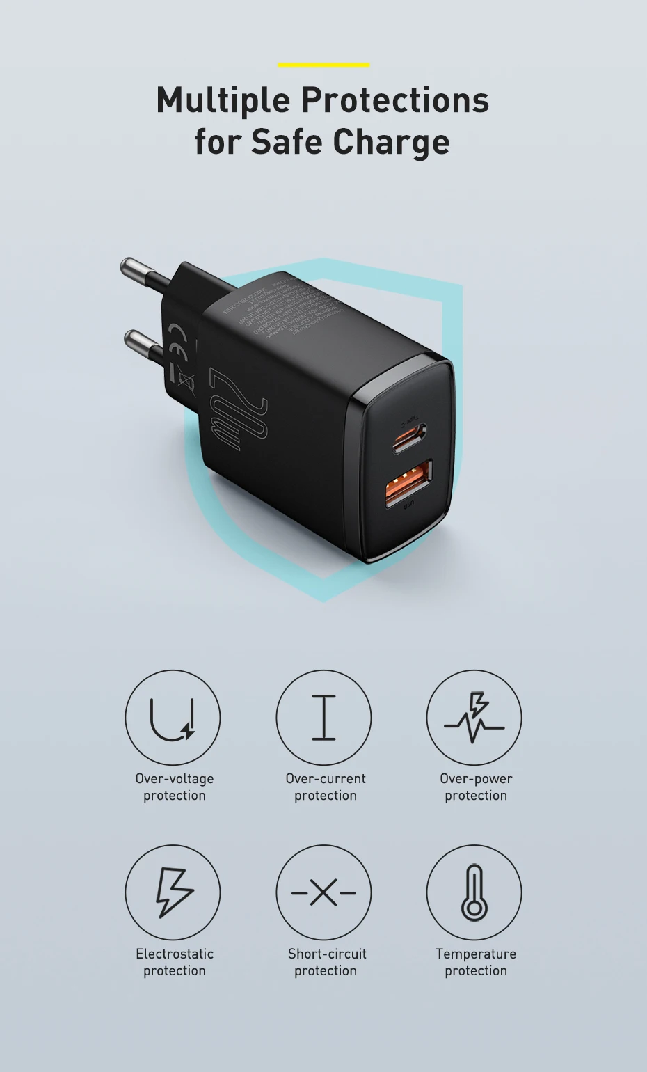 Мощность 20 Вт, мини, но быстрое компактное быстрое зарядное устройство U + C 20W EU