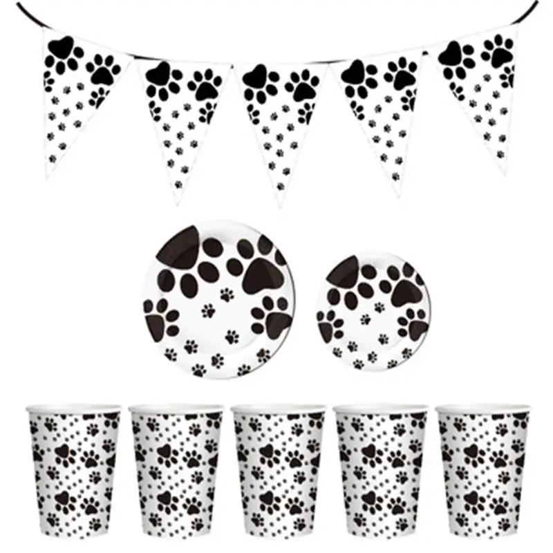 Черно-белые вечерние украшения для собак, для домашних животных, для дня рождения, вечерние, Supplis, собака, лапа, печатать воздушный шар, баннер, семейные вечерние, одноразовые, столовые приборы, соломенные