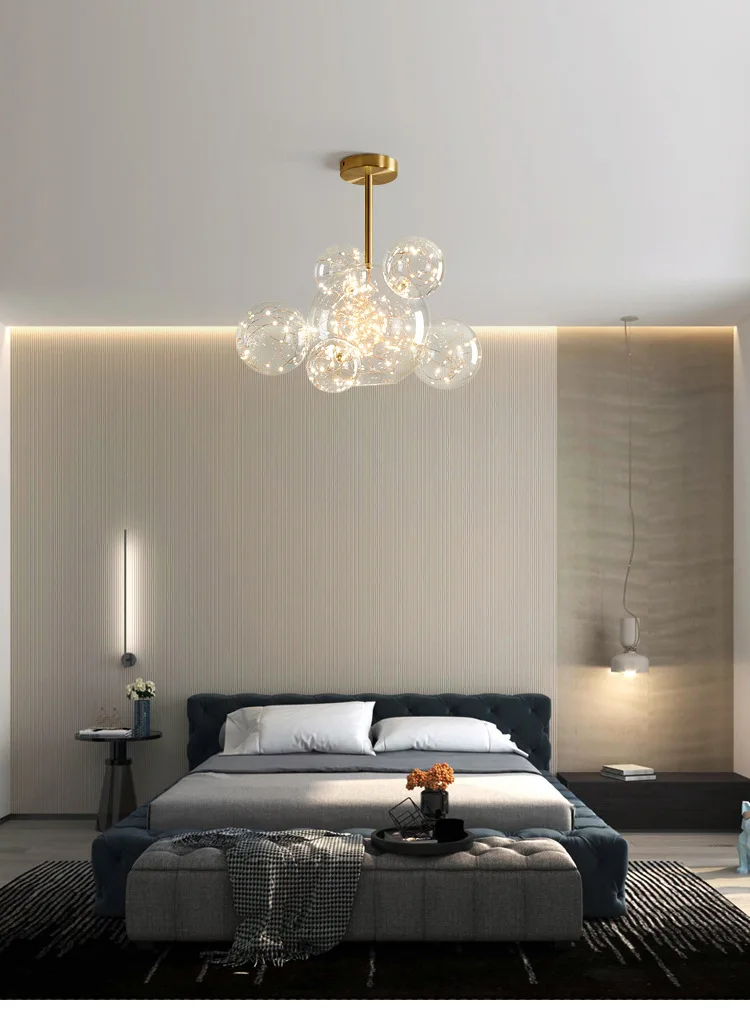 Светодиодный светильник Kobuc Gypsophila, люстра из железного стекла с пузырьками, Золотая люстра, светодиодный светильник для столовой, фойе, домашний декор, светильник