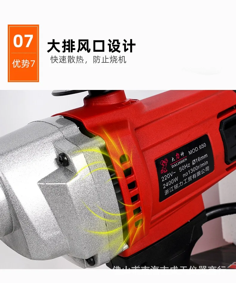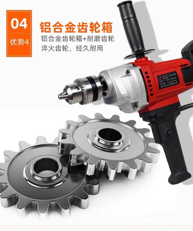 3. Самоблокирующийся переключатель, регулируйте положение шестерни в соответствии с различными условиями работы, самоблокирующийся может зафиксировать электрическую дрель на фиксированной скорости