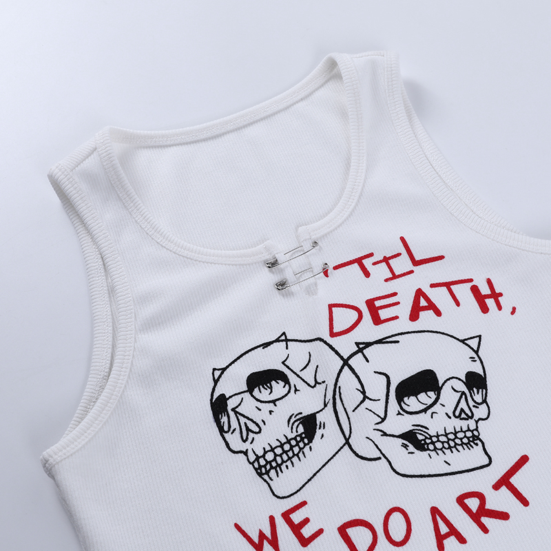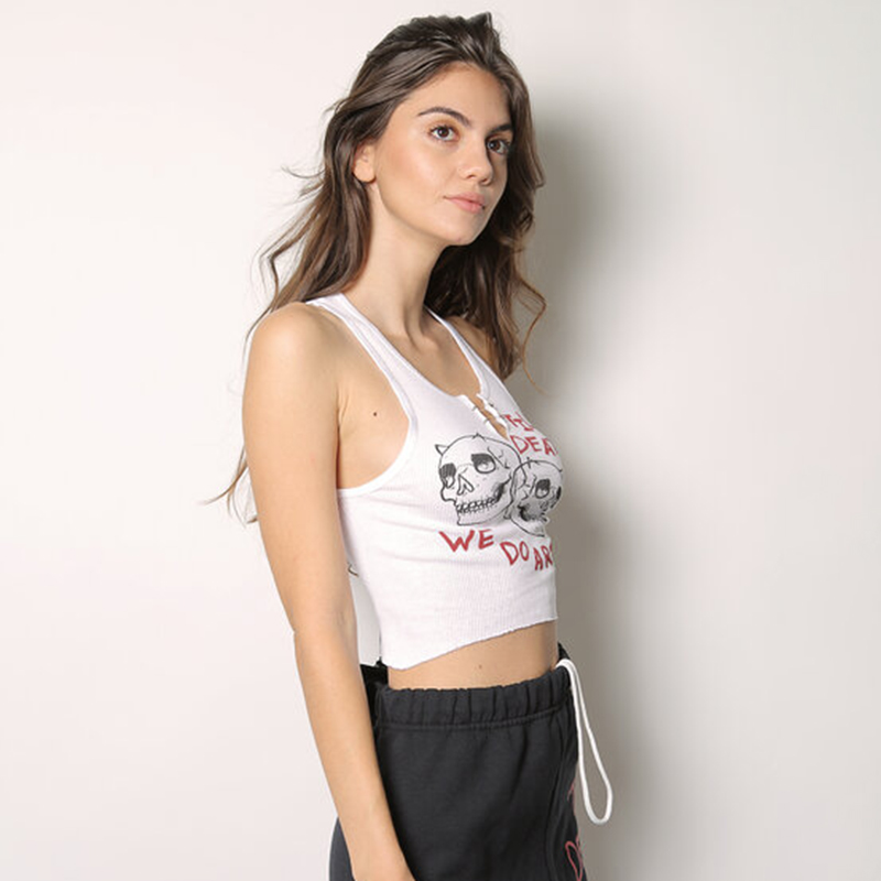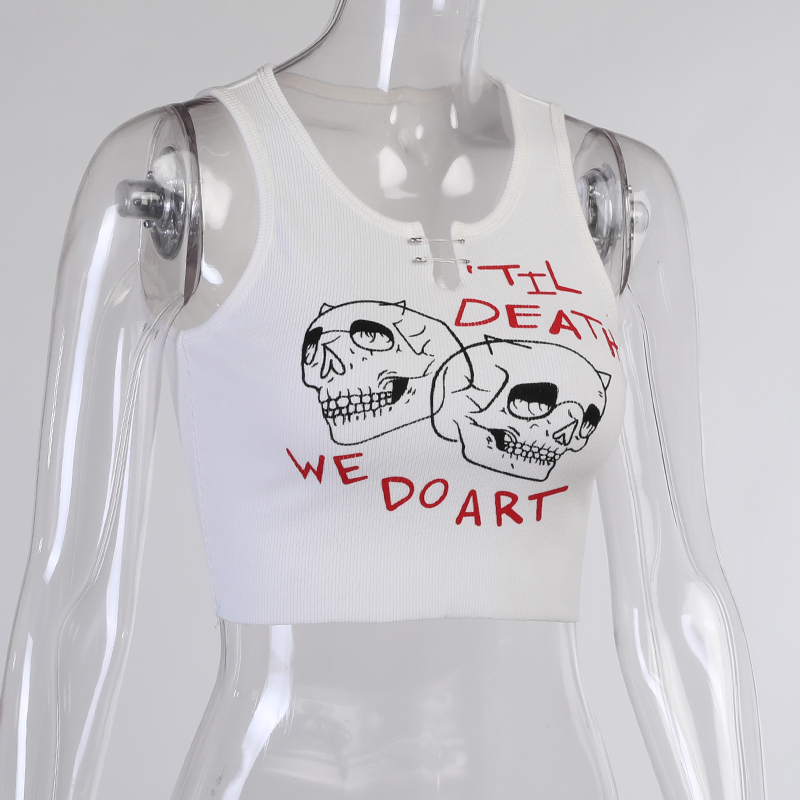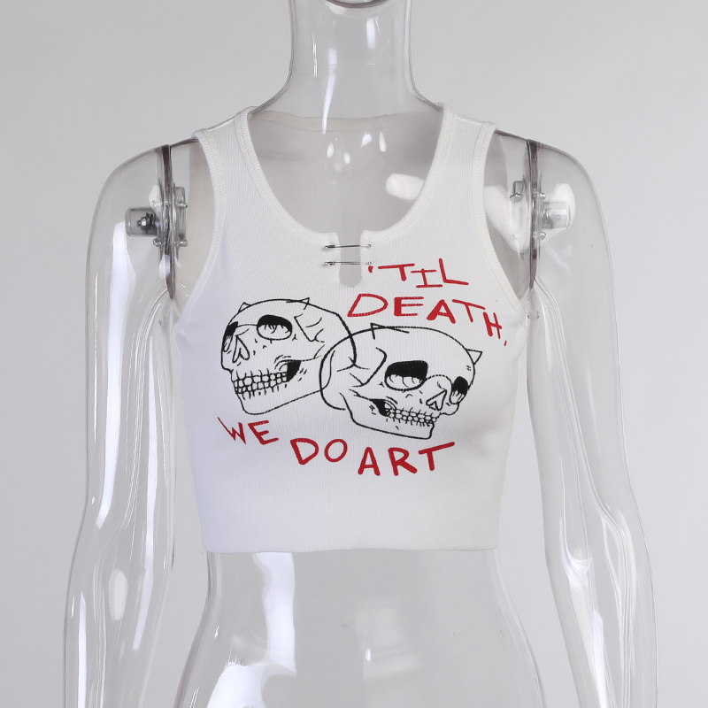 Женский жилет, ребристый укороченный топ с принтом черепа и v-образным вырезом для женщин