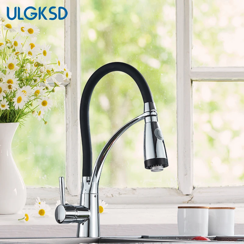Светодиодный Хромированный и черный кухонный кран на бортике кухонный кран выдвижной 360 ° Вращение Испания смеситель холодной и горячей воды