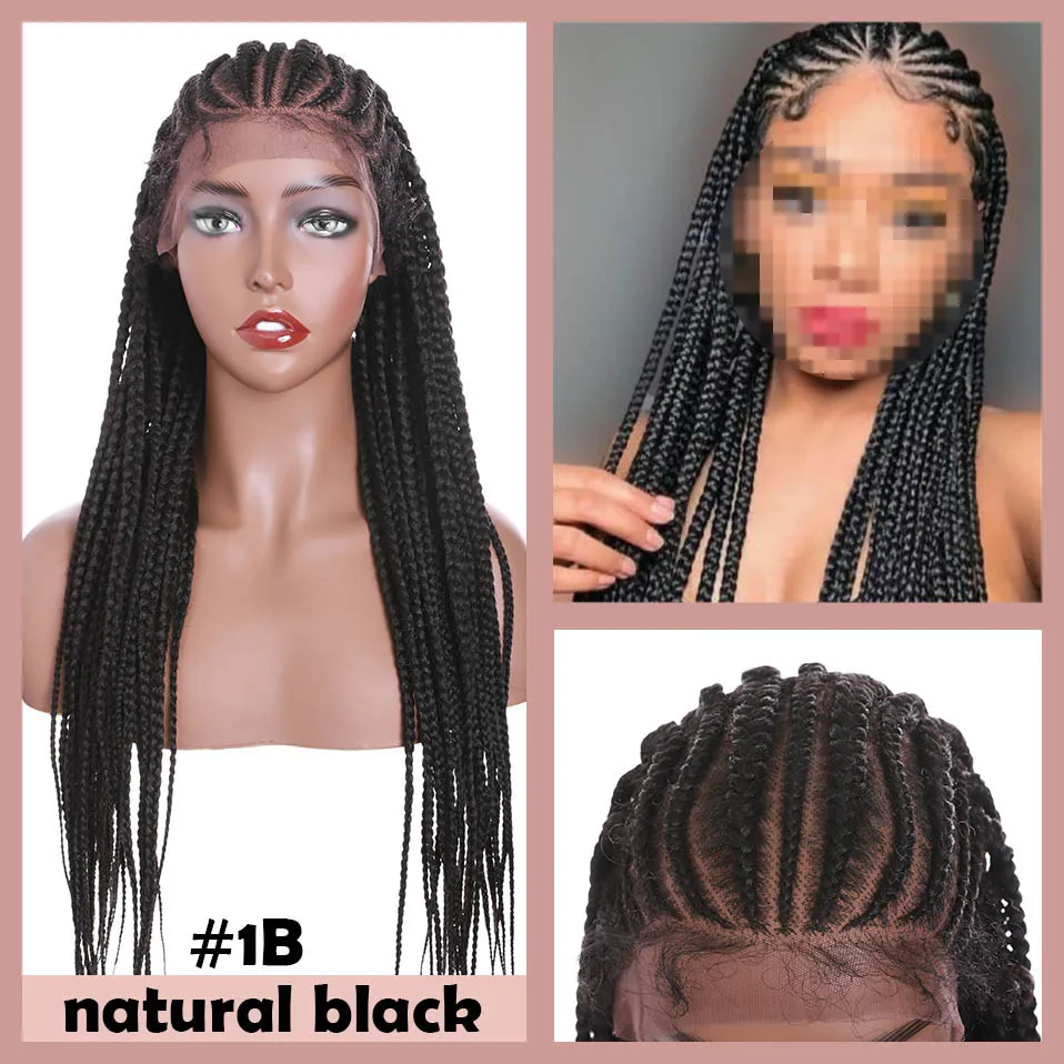 Hair Type: Synthetic Box Braided Hair Lace Front Wigs, Glueless Wig