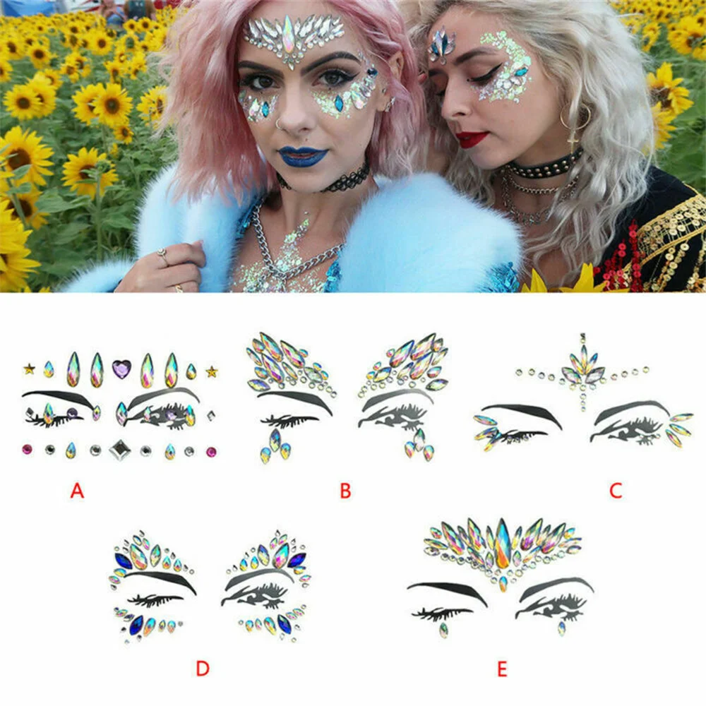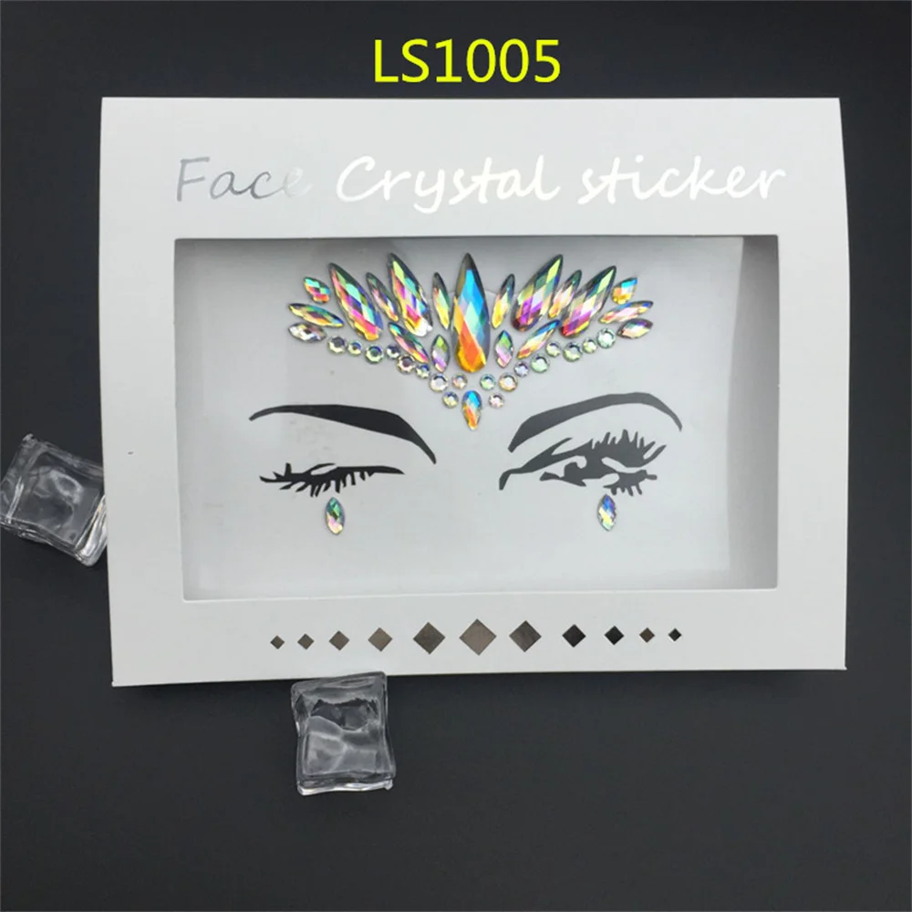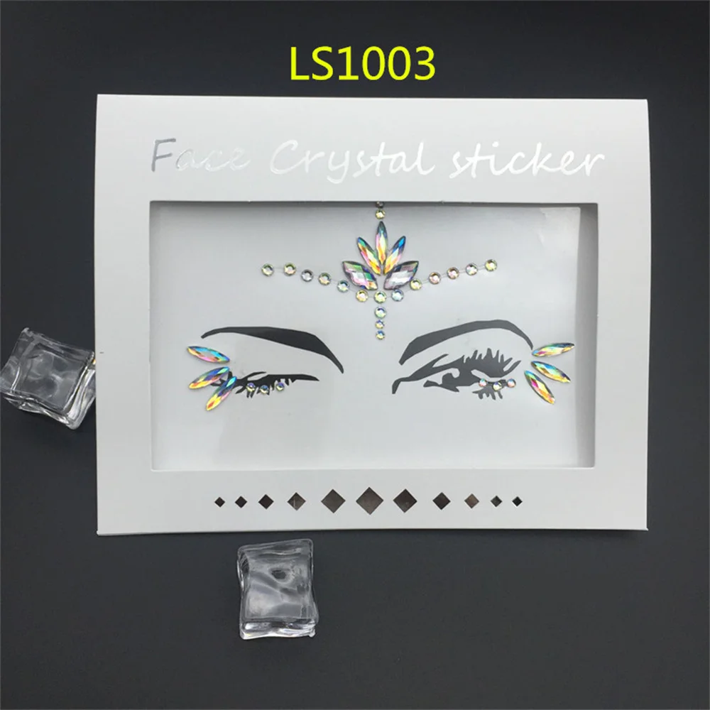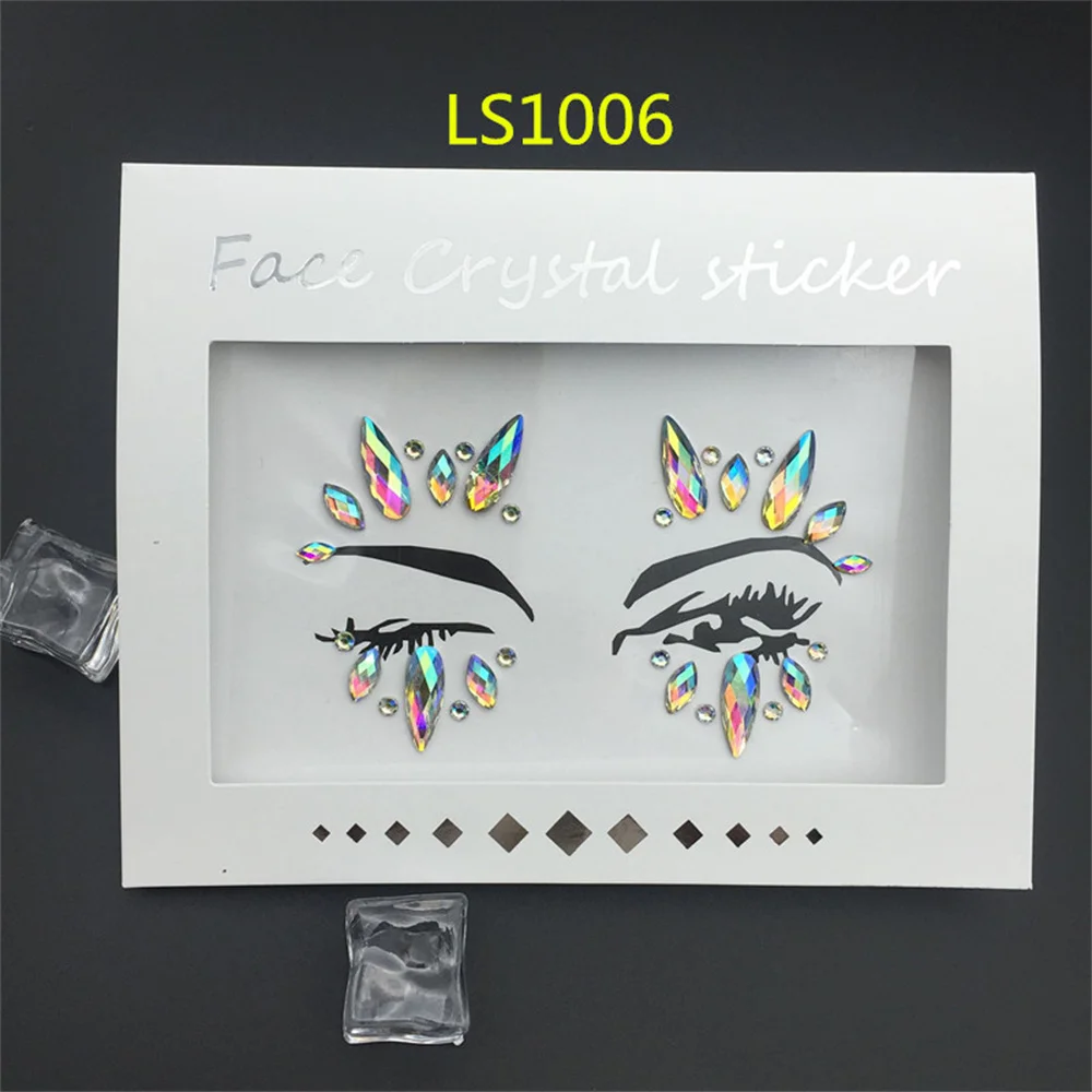 Особенности: 100% новый и высокое качество. Красивые клеящиеся драгоценные камни для лица. Создайте потрясающий праздничный образ. Простая очистка и прочное закрепление в выбранном Вами месте. Легко наносится и удаляется только с мылом и водой. Создает уникальный и потрясающий вид. Вечерние праздники, праздники, барбекю или пляж! Характеристики: Тип: 3D наклейки с татуировкой на лицо Стиль: Модный, очаровательный, сексуальный Материал: акриловое сверло/хрустальное сверло/сверло из стекла/сверло из смолы Цвет: 15 узоров Посылка включает в себя: 1 * 3D наклейки для татуировки лица