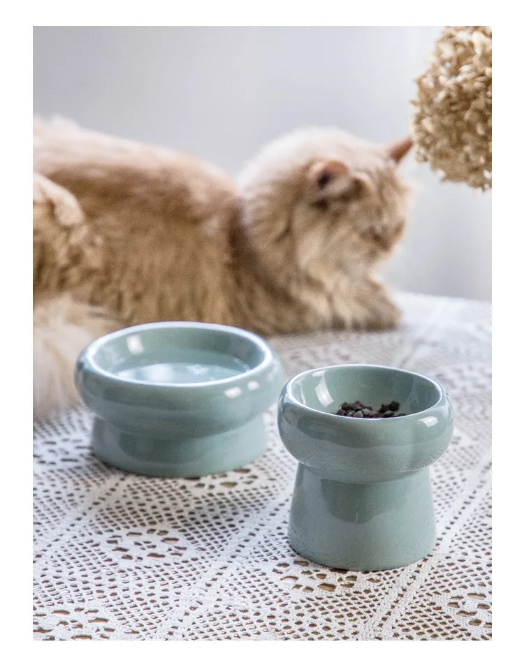YourKith миска для кошек керамическая Экологически чистая синяя белая керамическая миска для собаки пищевой фидерный контейнер поставщик с бамбуковой полкой