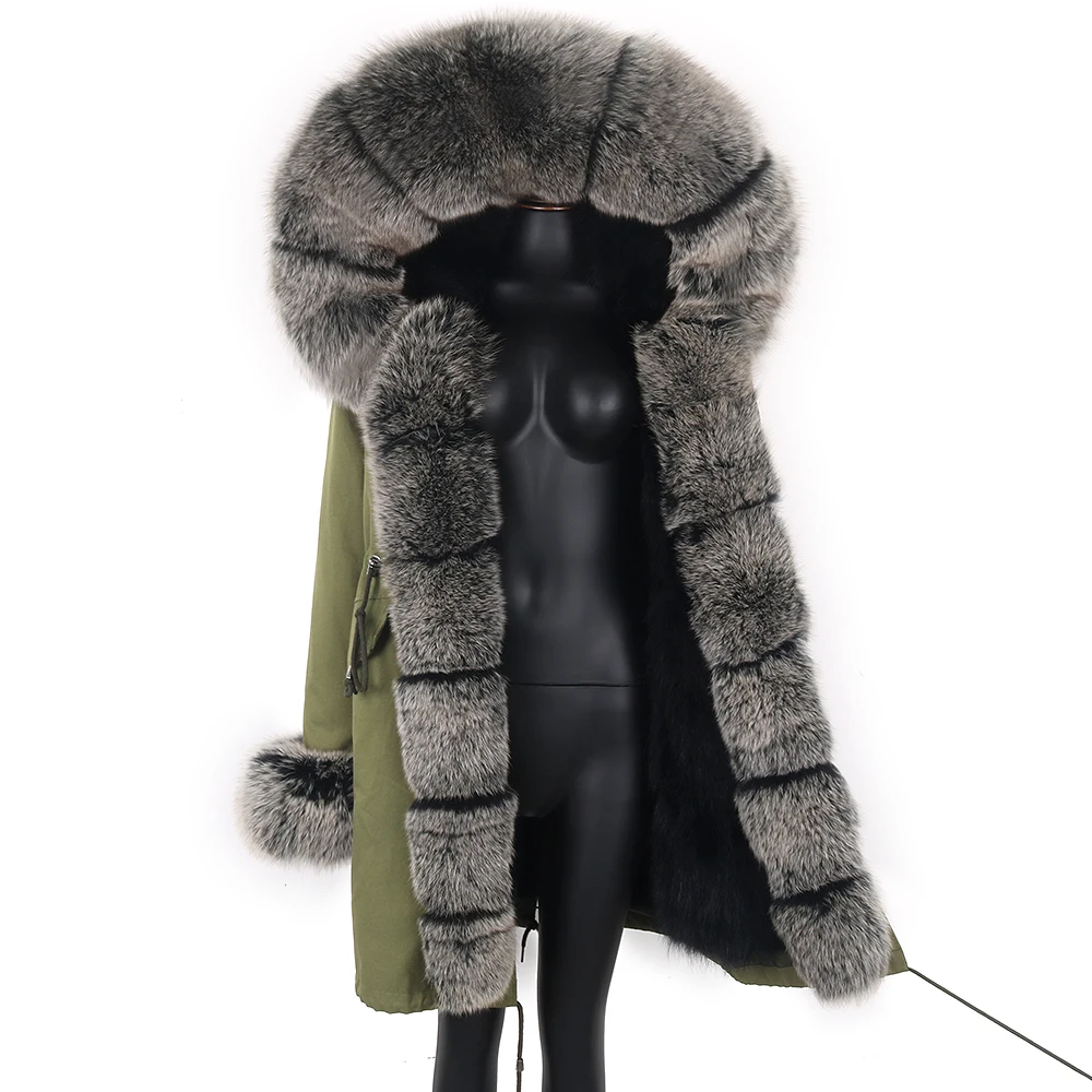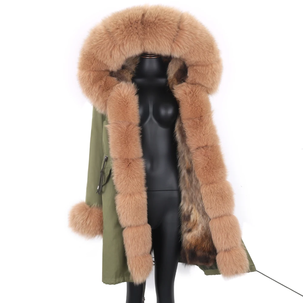 Водонепроницаемый чехол + 90% утиный пух рукава + натуральный меховой жилет Raccon + большой воротник из натурального меха = парка