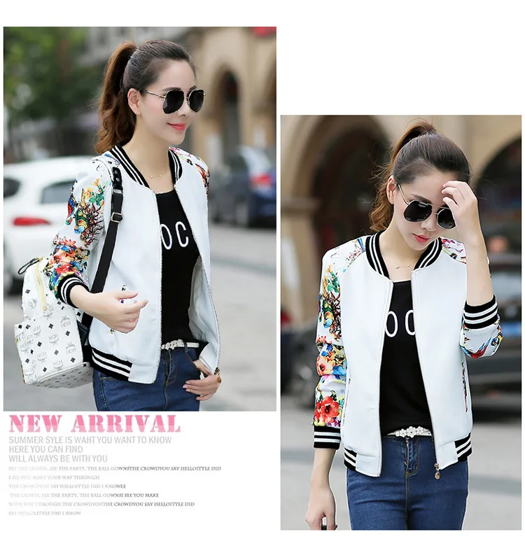 TingYiLi корейский стиль винтажные куртки с цветочным принтом пальто весна осень тонкий Бомбер куртка женская повседневная черная белая короткая куртка