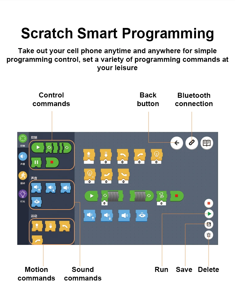 Скретч-умное программирование: вытащите мобильный телефон для простого программирования в любое время и в любом месте и установите различные инструкции по программированию по желанию