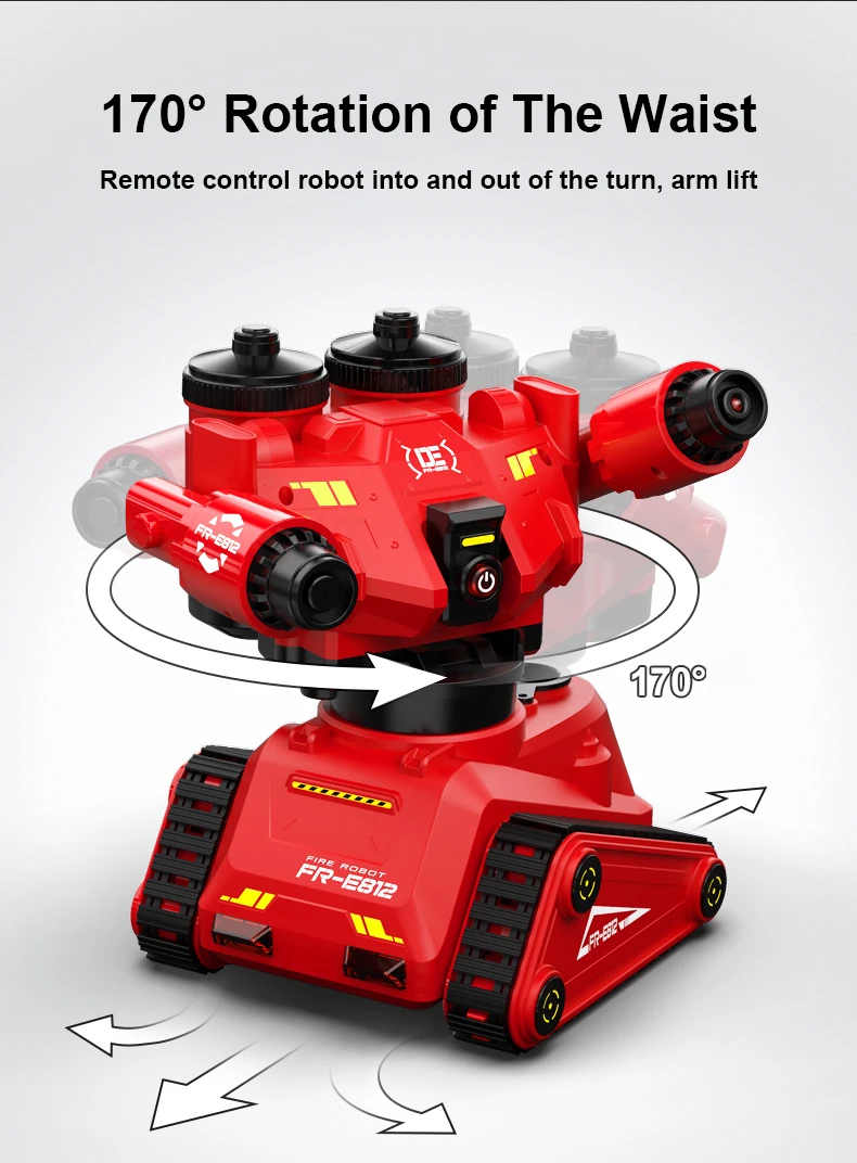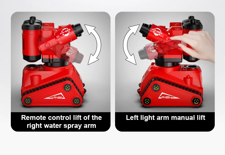Вращение на 170 °: роботом управляется пульт дистанционного управления для поворота вперед и назад, правый распылительный рычаг поднимается и опускается пультом дистанционного управления, а левый световой рычаг поднимается и опускается вручную