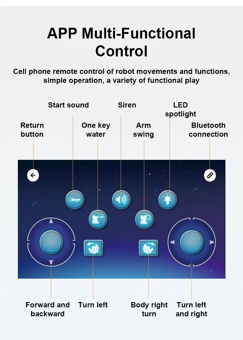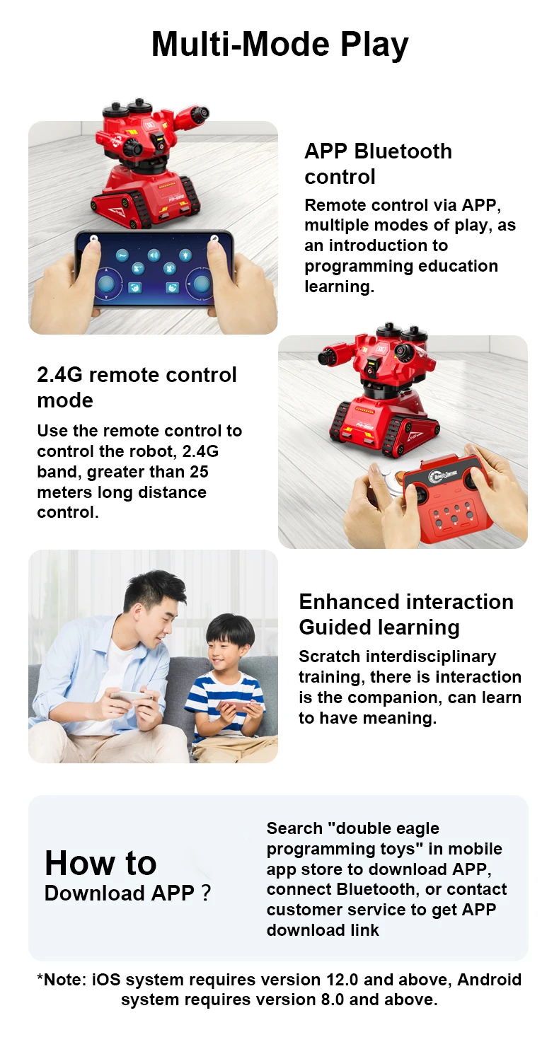 Многофункциональное управление через приложение: мобильный телефон для удаленного управления действиями и функциями робота, простое управление, разнообразные функции и геймплей