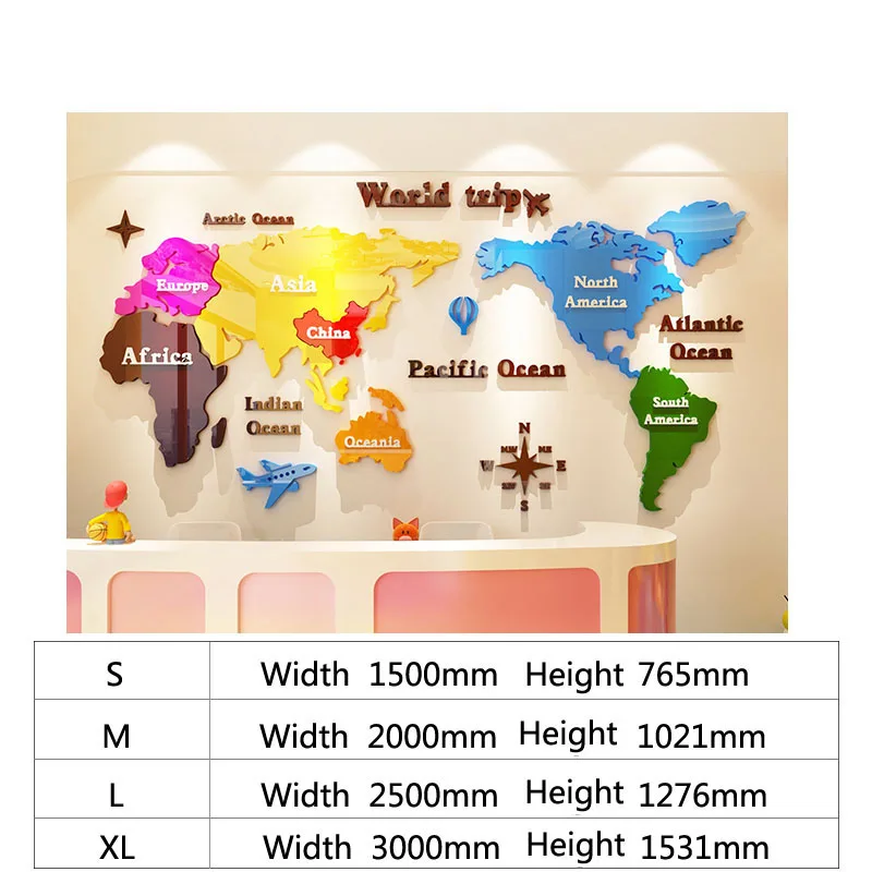 Карта мира цветные настенные наклейки акриловые обои офиса компании украшения 3D классная комната, для стен настенные наклейки для детской комнаты росписи большой Размеры