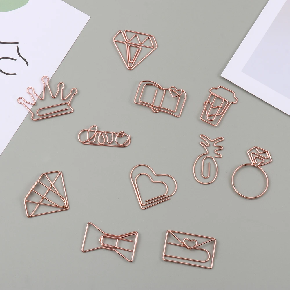 10 шт./упак. Творческий «любящее сердце» Алмазные коронки канцелярская скрепка в форме мини металлические зажимы мультфильм фото зажимы для канцелярских принадлежностей