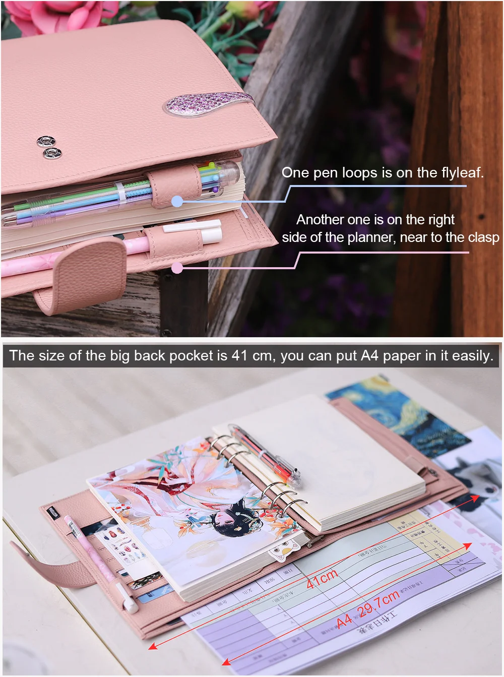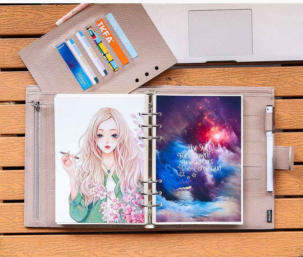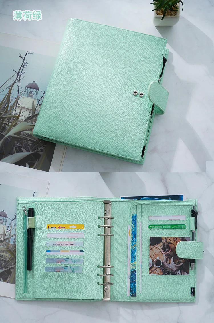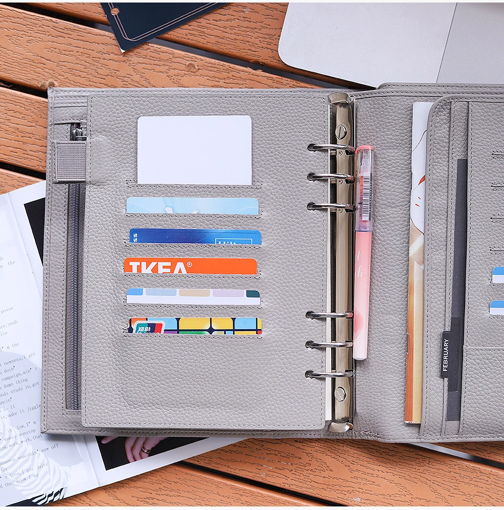 Высококачественные кольца, 6 отверстий, диаметр 30 мм, размер был показан на картинке. Это максимум для 160 листов личной бумаги 100 г. Эти кольца можно легко заменить, открыв винты.
